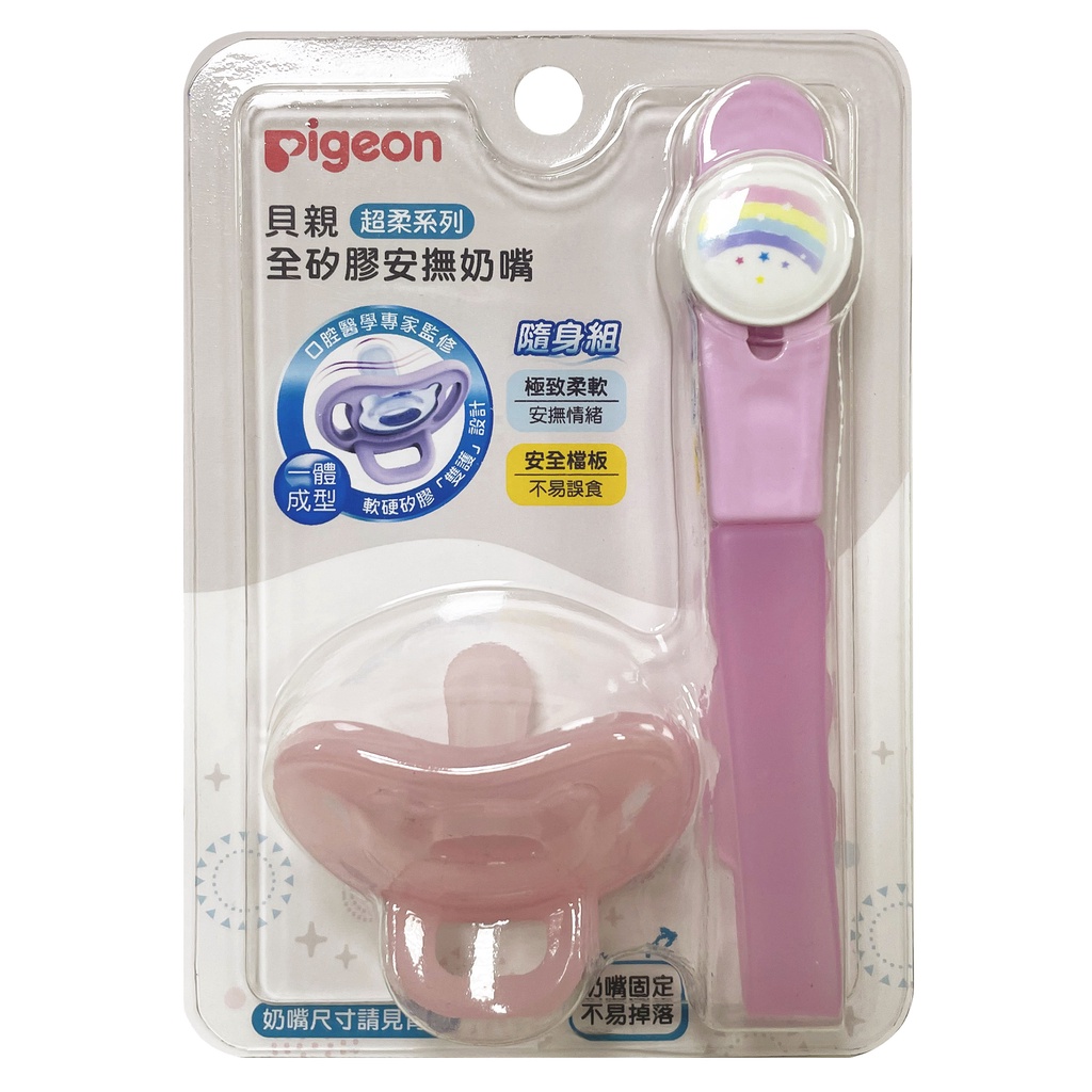 貝親 PIGEON 全矽膠安撫奶嘴隨身組(粉S/藍S)