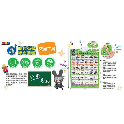 幼福文化 Yow Fu 忍者兔3D立體觸控有聲學習掛圖:交通工具