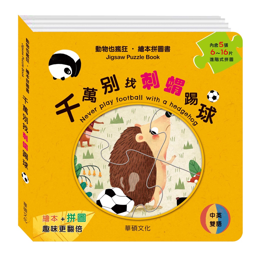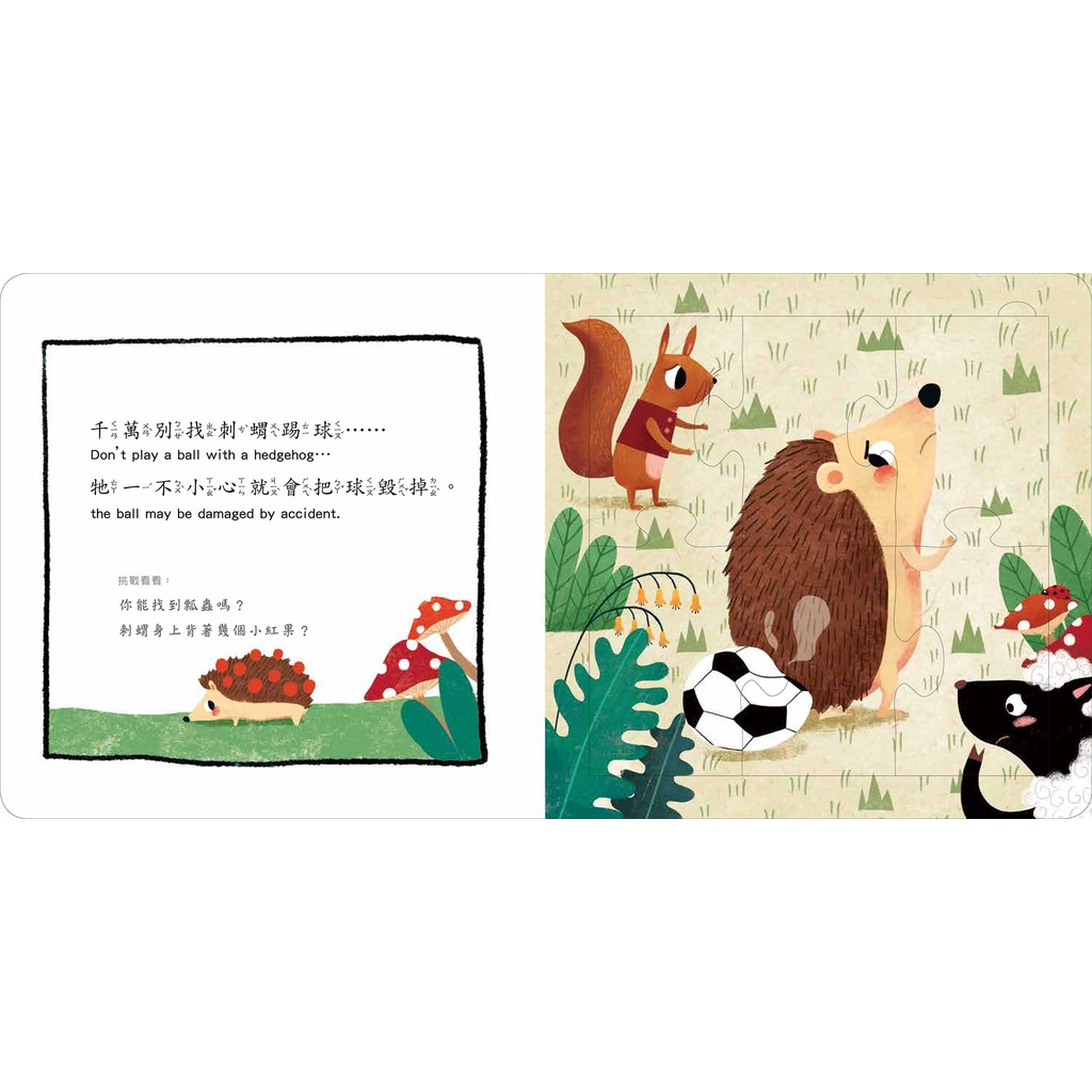 華碩文化 繪本拼圖書系列_千萬別找刺蝟踢球(遊戲拼圖書)