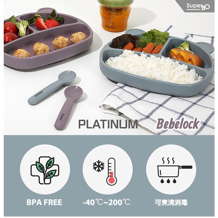 韓國BeBeLock 吸附型重磅餐盤-夜月灰[免運費]