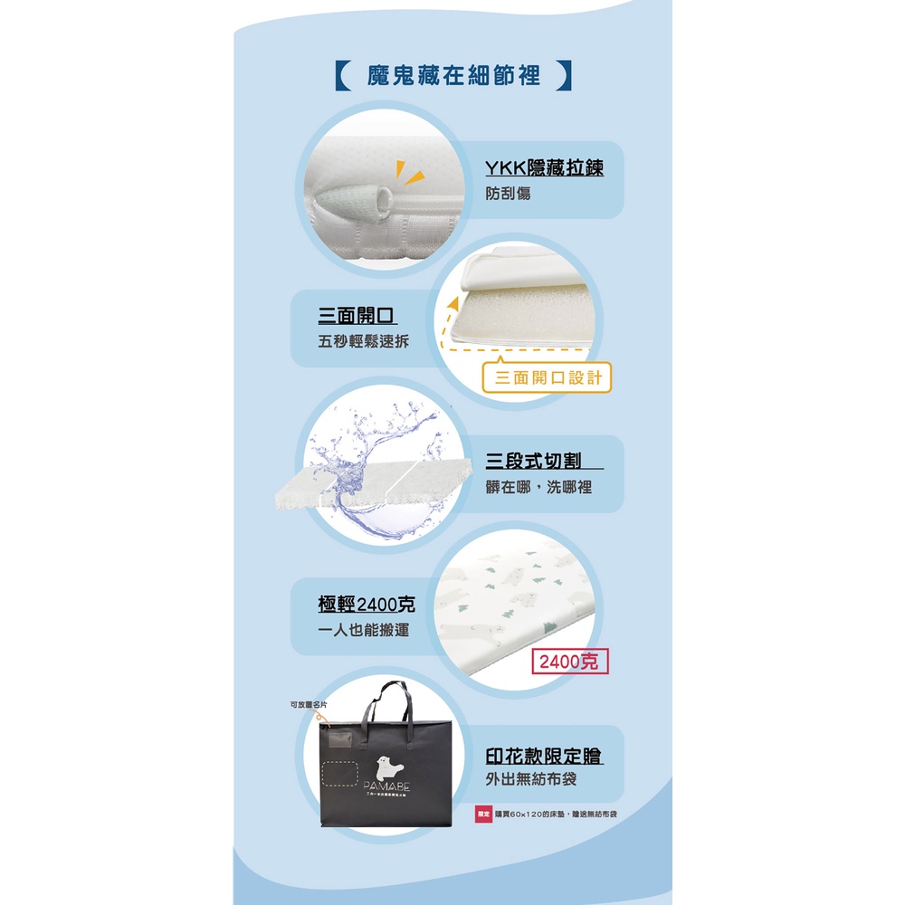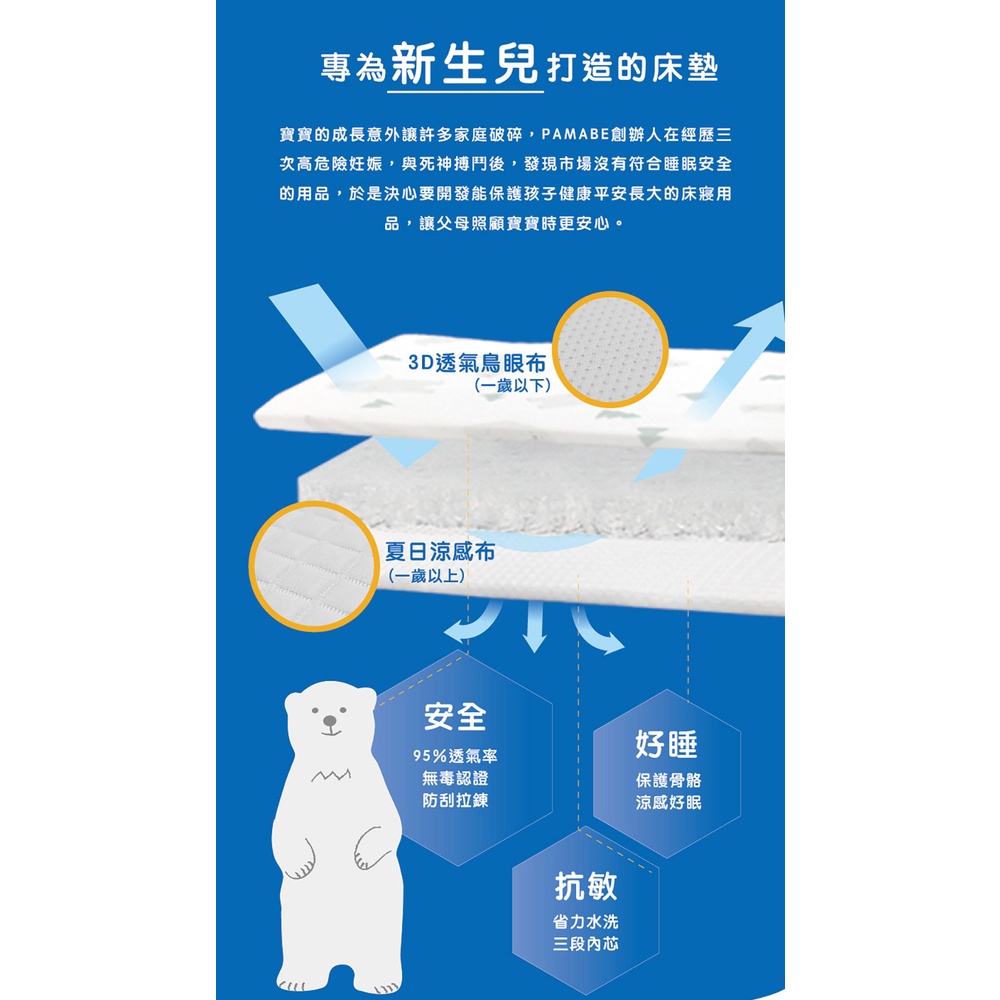【PAMABE】二合一水洗透氣嬰兒床墊(60x120x5cm)|嬰兒床墊、水洗床墊、透氣床墊、護脊設計、防螨、不塌陷