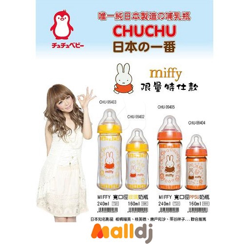 啾啾 Chu Chu MIFFY寬口徑玻璃奶瓶-240ml[免運費][即期良品]