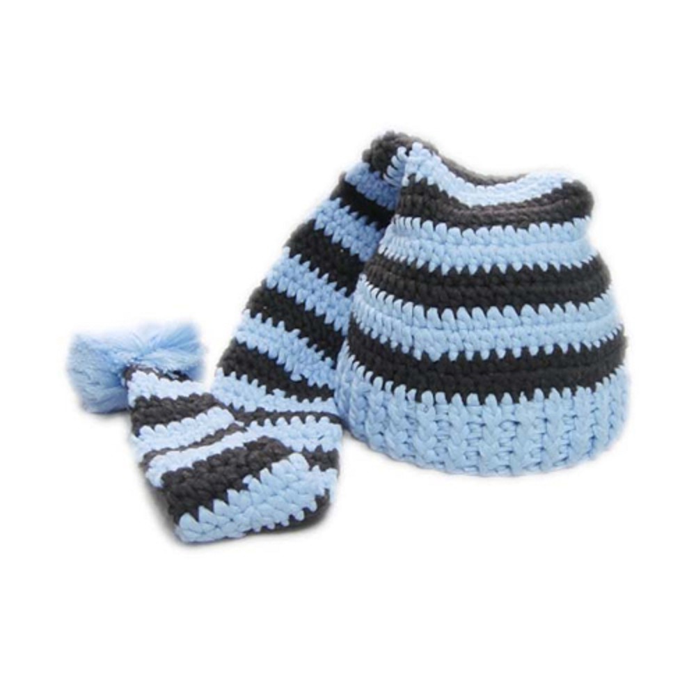 美國 Cutie Knitting 手工編織嬰兒長尾帽Baby Blue Brown[免運費]