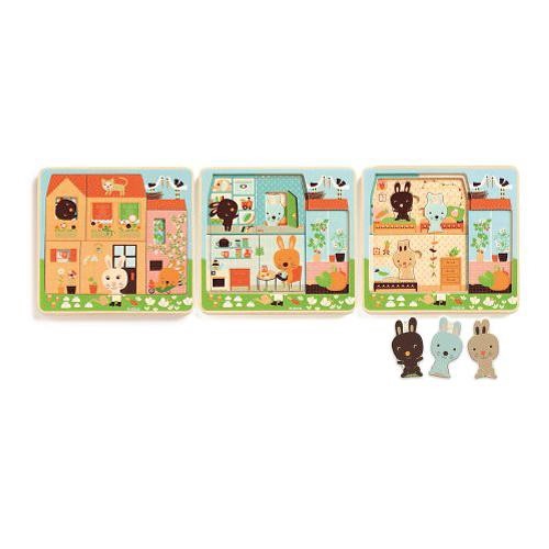 智荷 DJECO 木拼圖-兔子小屋三層拼圖[免運費]