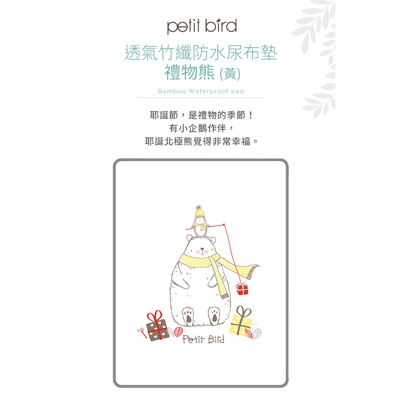韓國 petit bird透氣竹纖抗菌防水尿布墊-禮物熊(黃)[免運費]