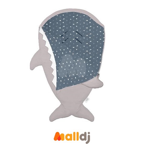 西班牙BabyBites 鯊魚咬一口(標準版)純棉手工嬰兒睡袋防踢被包巾-卡其灰(朵朵雲-藍底)[免運費]
