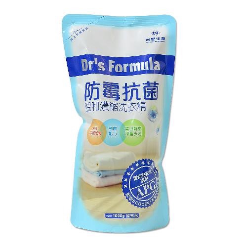 【台塑生醫 Dr's Formula】防防霉抗菌溫和濃縮洗衣精補充包1000ml 獨家蛋白酵素 強力去污 溫和保濕護手