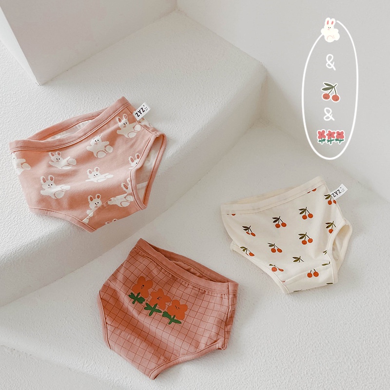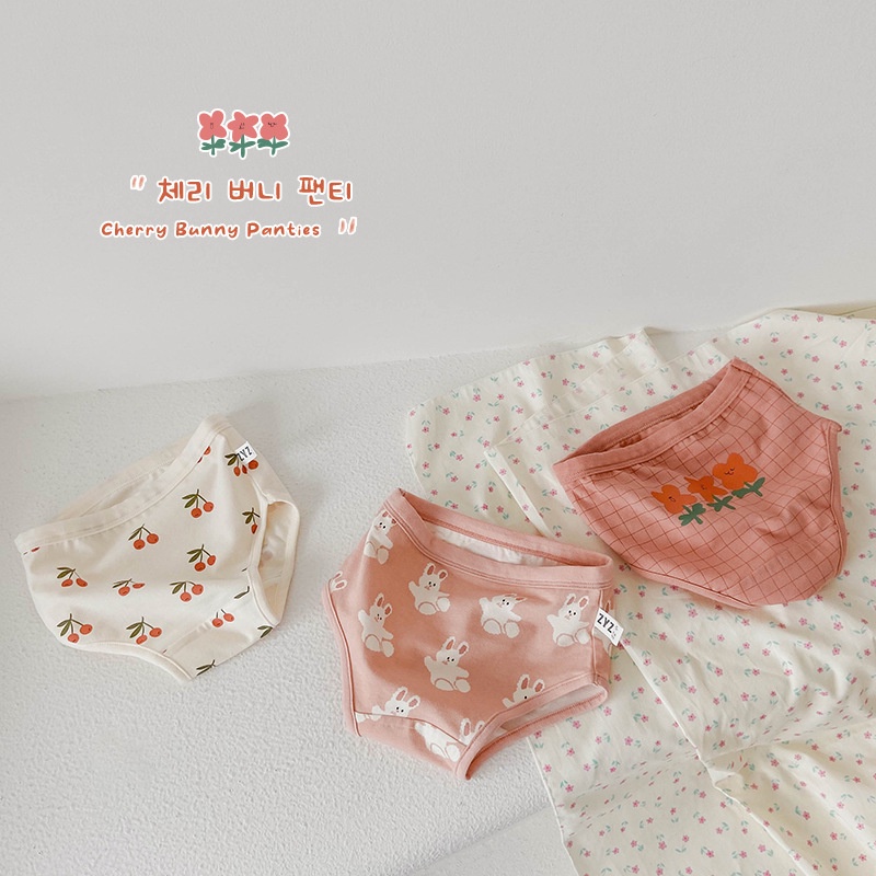 ZYZ 女童三角內褲3入組-花朵櫻桃