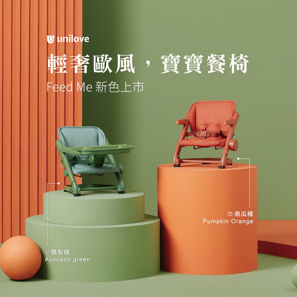 Unilove Feed Me 攜帶式摺疊餐椅+座墊-酪梨綠/南瓜橘[免運費]