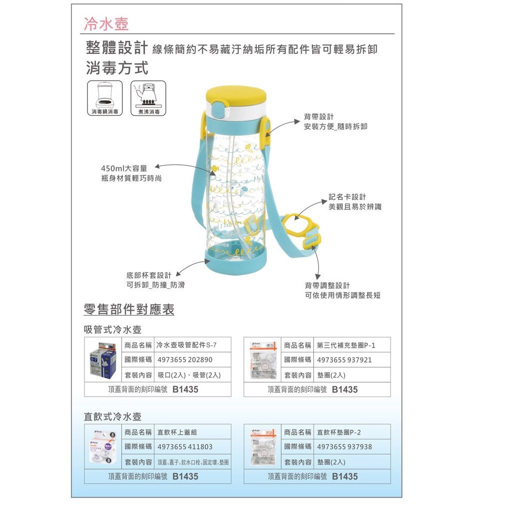 利其爾 Richell 第四代LC粉紅派對兩用冷水壺組-450ml[免運費]