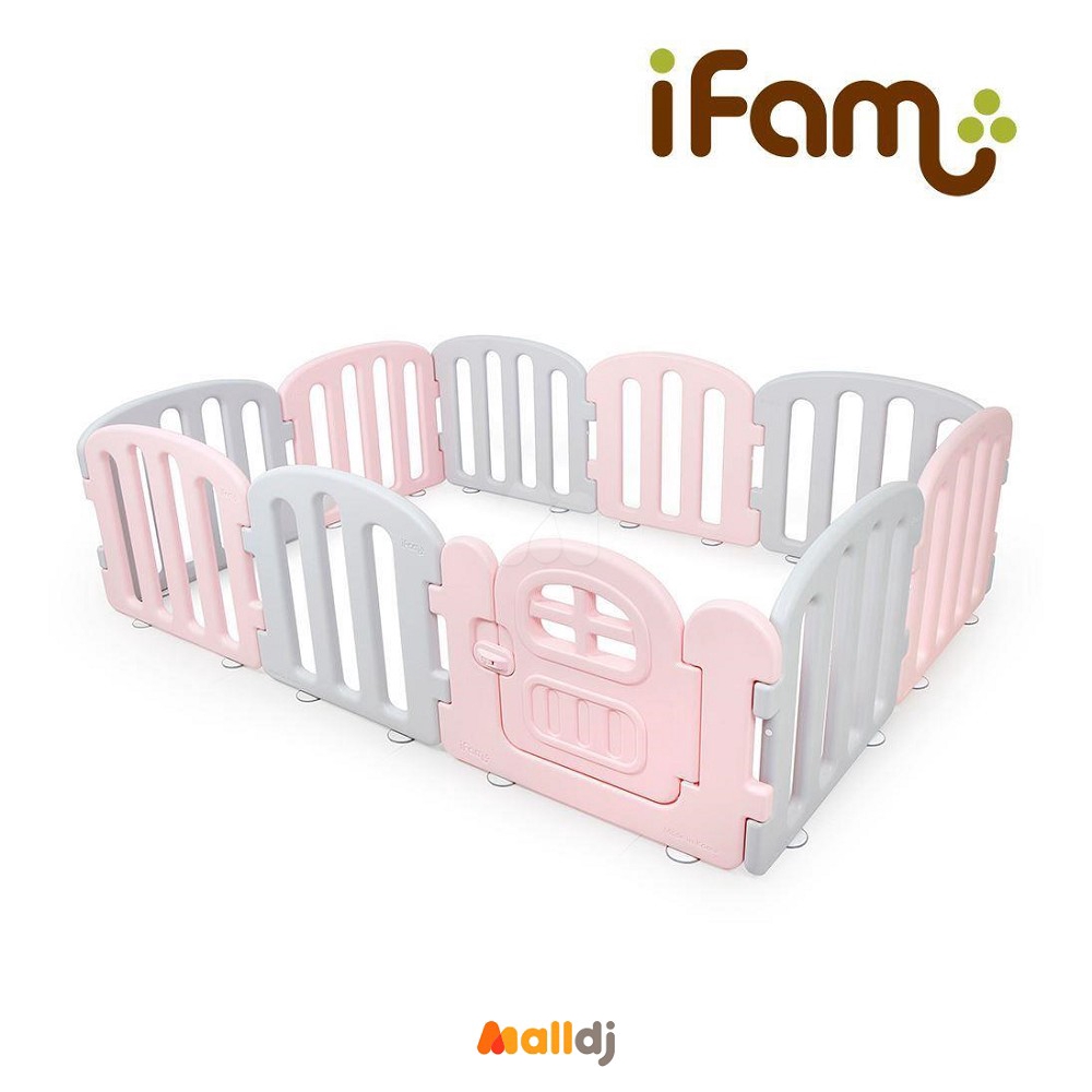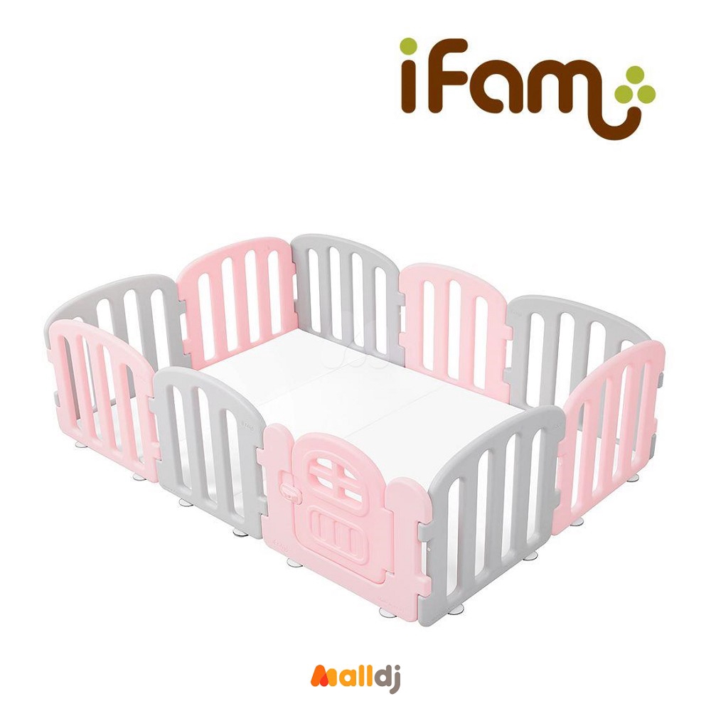 韓國 Ifam 極簡時尚圍欄套組-粉紅灰圍欄+灰白雙色地墊[免運費]