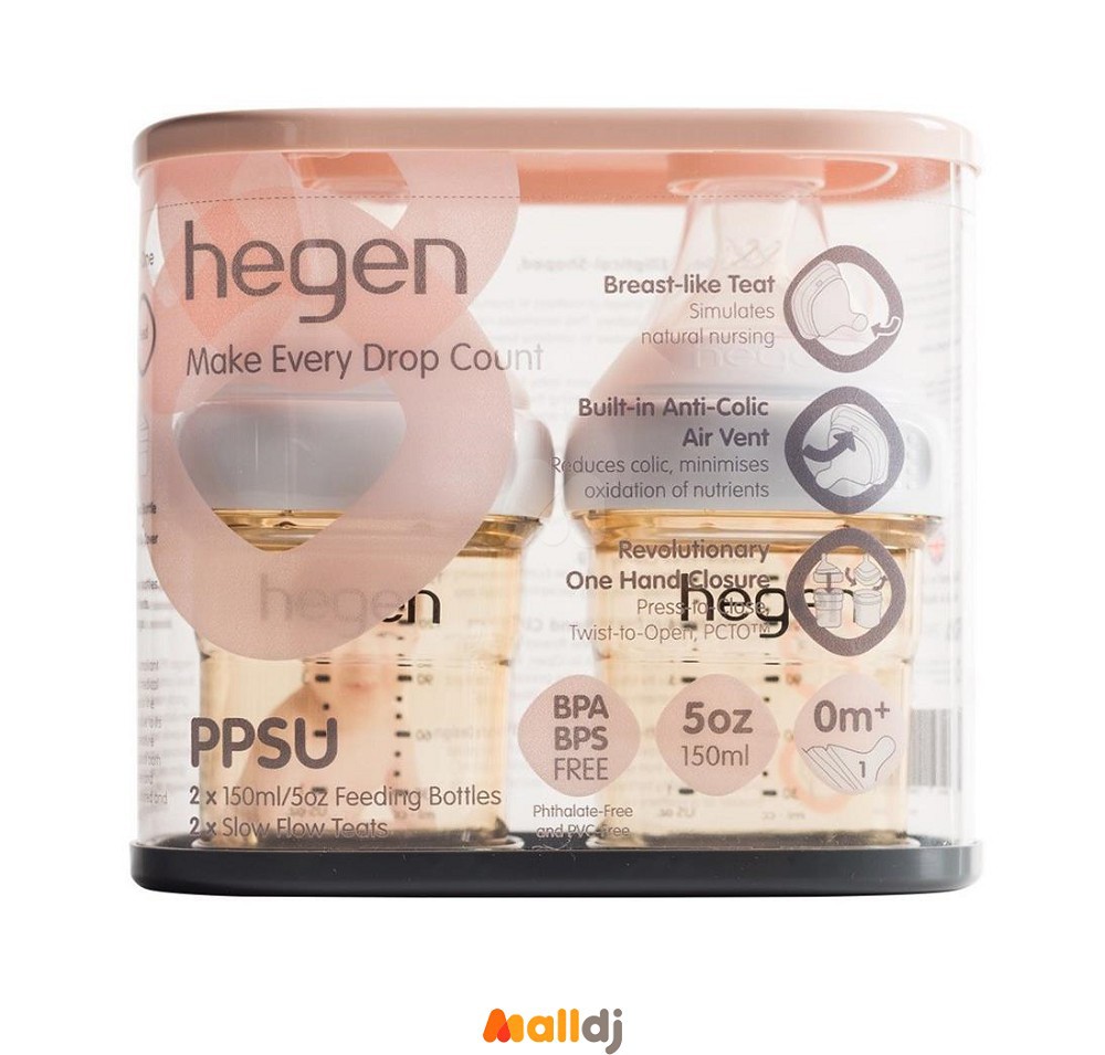 【Hegen】金色奇蹟 PPSU 多功能方圓型寬口奶瓶 150ml(雙瓶組)|智能防脹氣、母乳餵養、雙瓶組、寶寶奶瓶