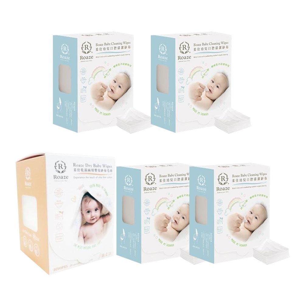 柔仕 Roaze 乾濕兩用布巾(纖柔款)+清淨棉(80 X 1 盒 + 180 X 4 盒)