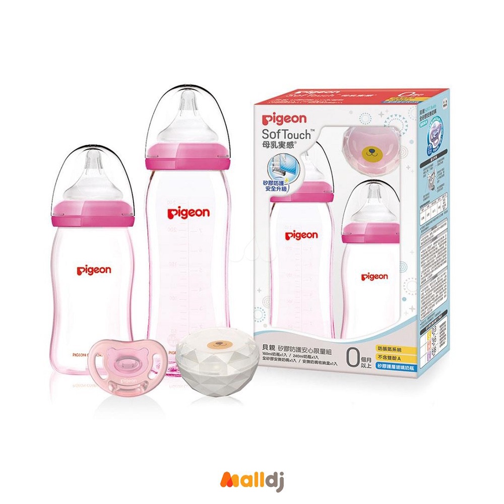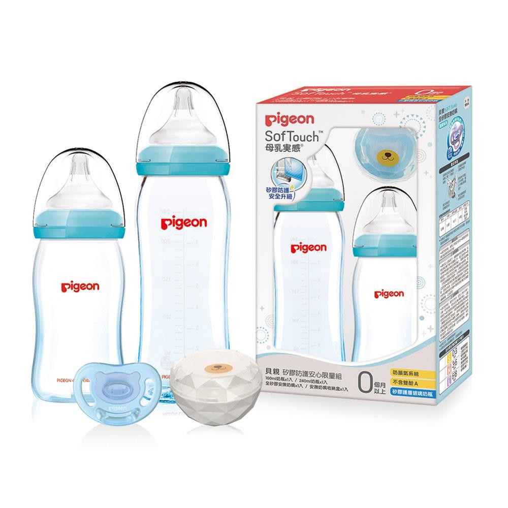 貝親 PIGEON 矽膠防護安心限量組(奶瓶一大一小加贈全矽膠安撫奶嘴S及收納盒)[免運費]