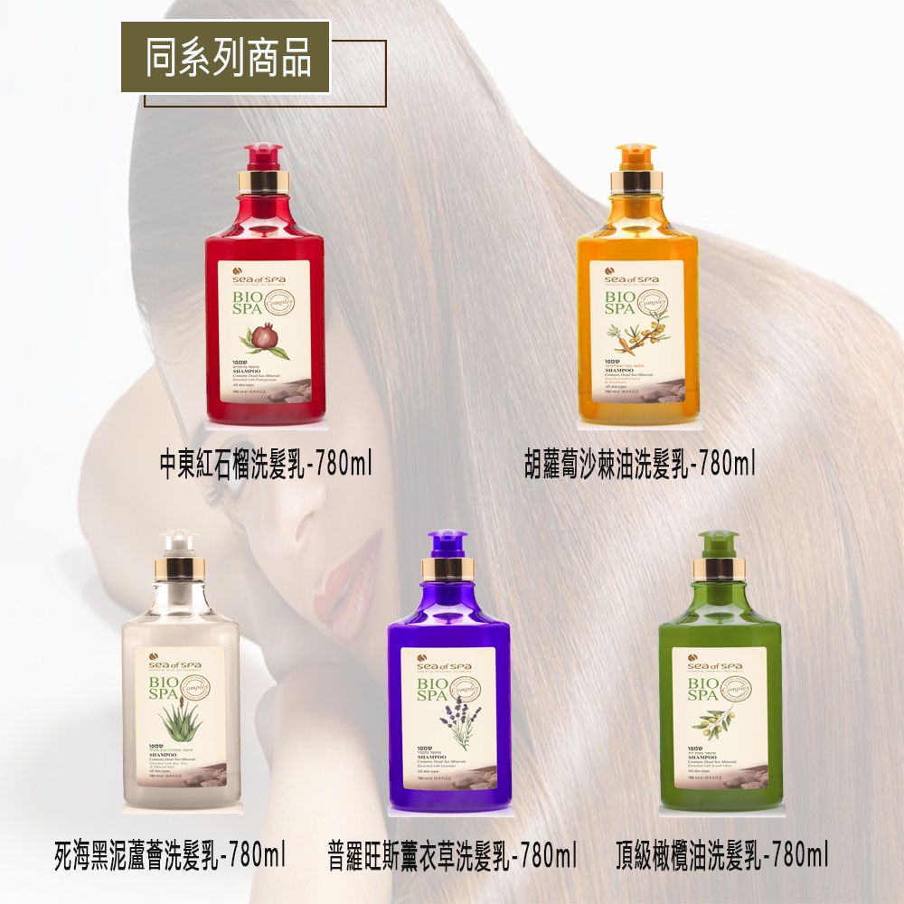 Sea of Spa 洗髮乳(中東紅石榴/普羅旺斯薰衣草/死海黑泥蘆薈/胡蘿蔔沙棘油/頂級橄欖油)-780ml