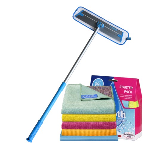 英國e-cloth 深層清潔除菌抗過敏 - 輕量級拖把150cm + 科技清潔布超值五件組