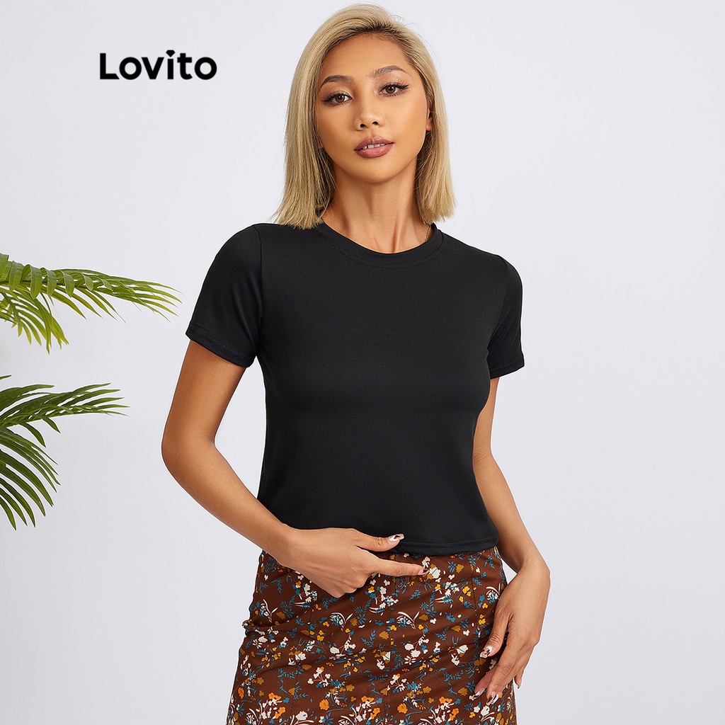 Lovito 休閒 T恤素色圓領基本款夏季女士 T 卹 L18X101