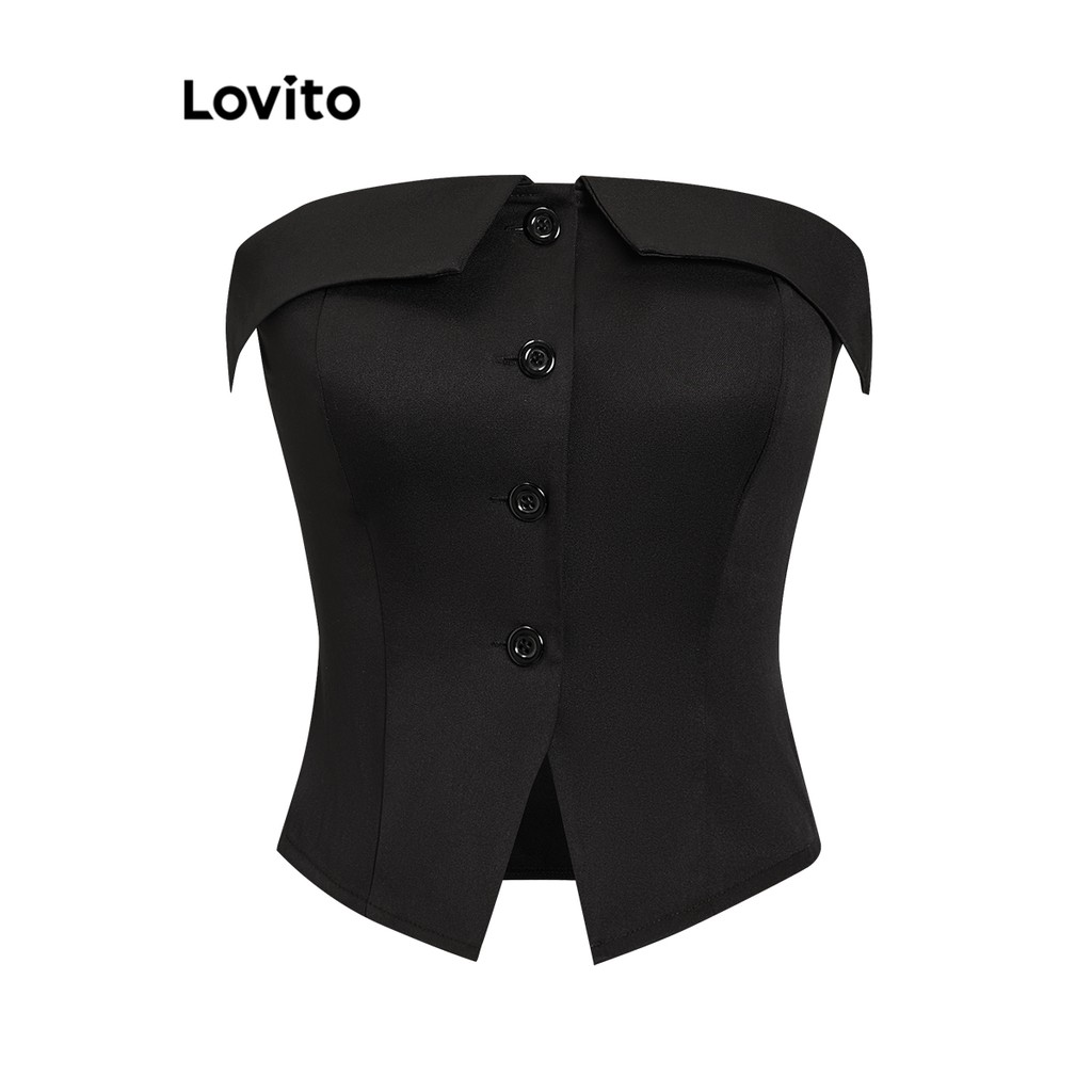 Lovito 女士休閒背心 素色羈扣背心 L67AD036 (白色的)
