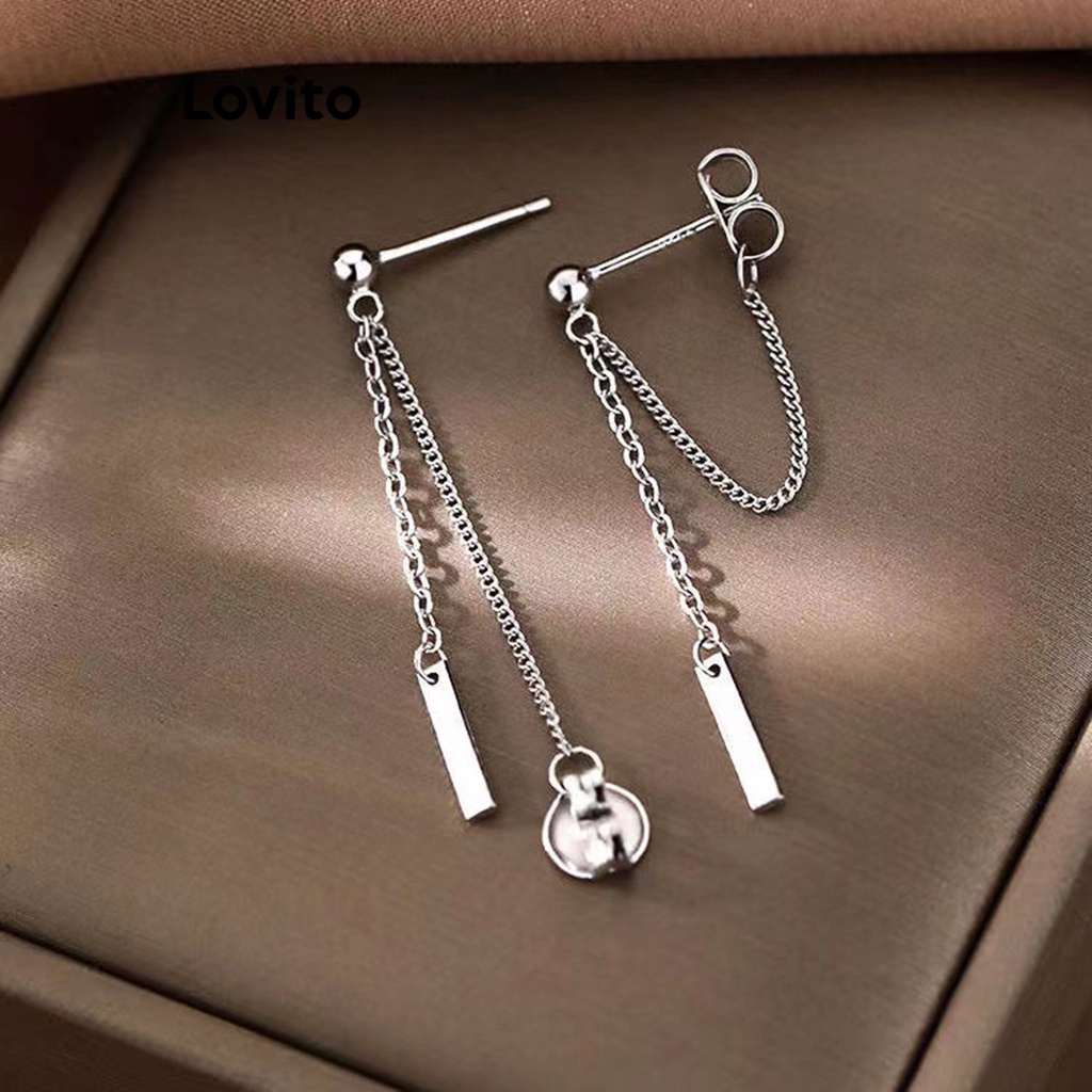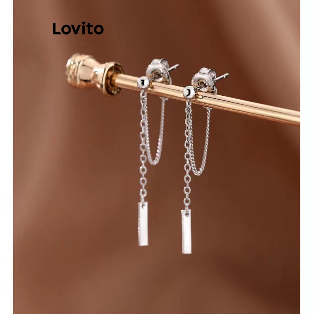 Lovito 女士休閒素色流蘇鏈耳環 LFA06105 (銀色)