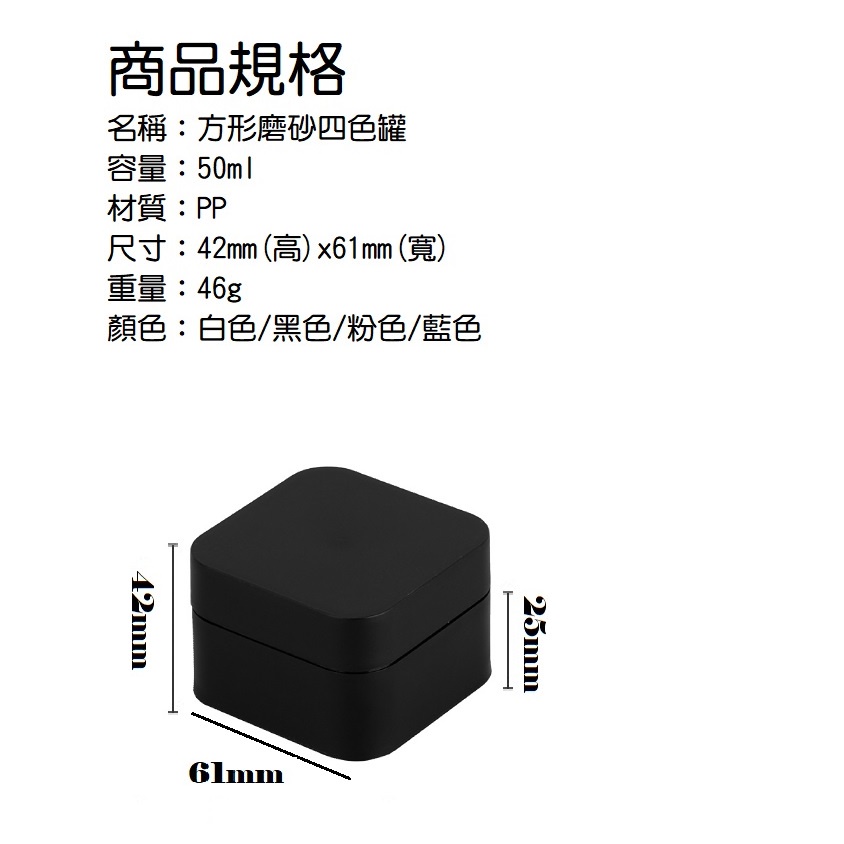 方形雙層磨砂罐 50ml 分裝瓶 雙層罐 分裝罐 磨砂瓶 厚瓶身 分裝霜膏罐 四色可選