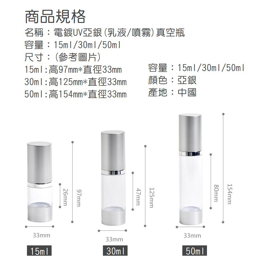 電鍍UV霧銀 亞銀 真空瓶 乳液瓶 15ml 30ml 50ml 分裝瓶 分裝罐 旅行分裝瓶 空瓶 空罐 樣品罐