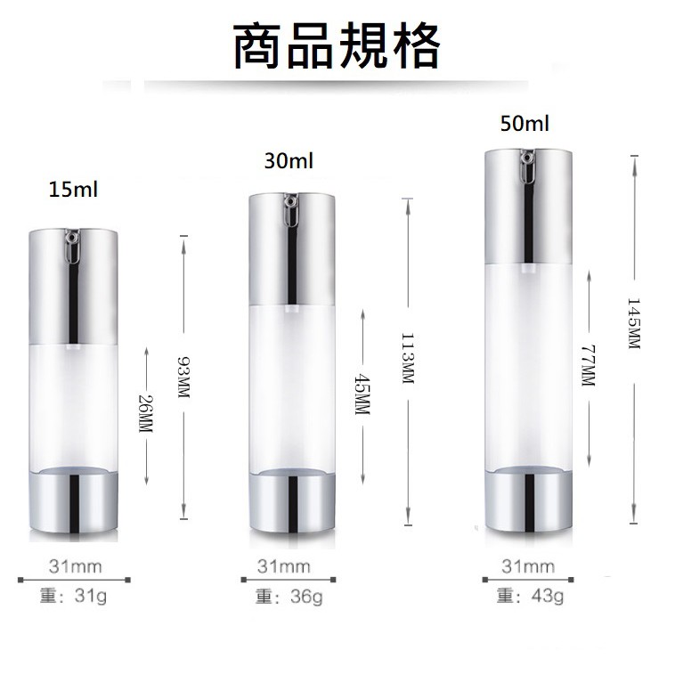 電鍍亮銀UV真空瓶 乳液瓶 分裝瓶 亮銀 15ml 30ml 50ml 分裝罐 旅行分裝瓶 空瓶 空罐