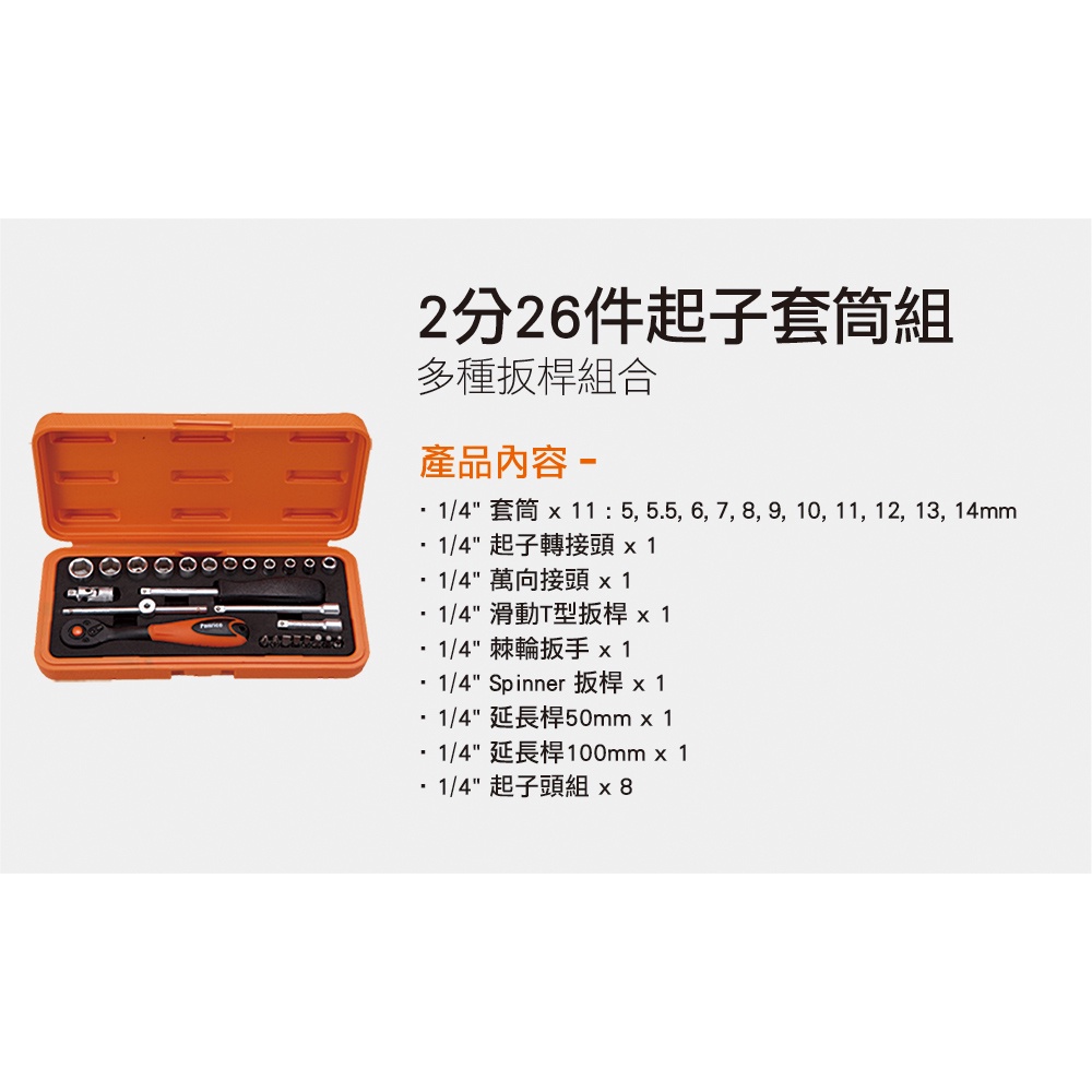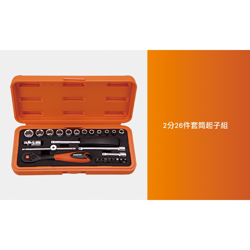 【Panrico 百利世】2分26件套筒組含滑動扳桿及延長桿(台灣製造)|ASTool 亞仕托