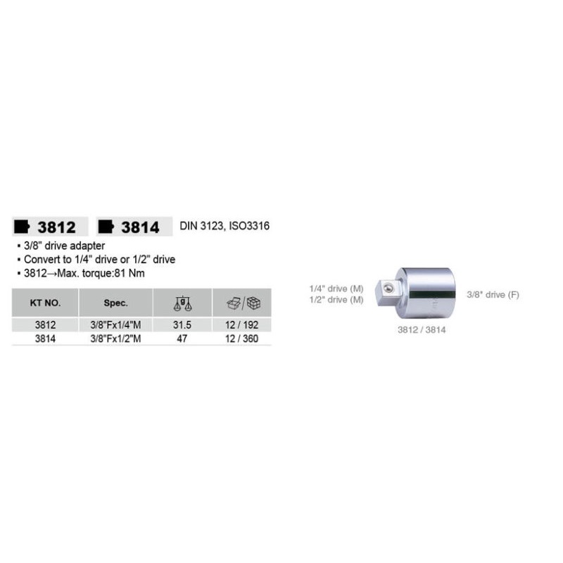 KING TONY 專業級工具 3/8"DR. 更換接頭 3/8"凹 x 1/2"凸 KT3814