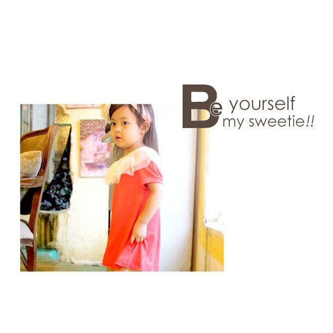 亮橘色紗領柔棉公主洋裝 台灣製造 nafee精品童裝 夏裝