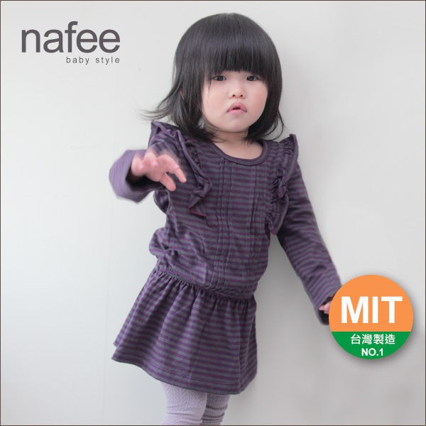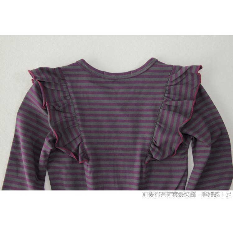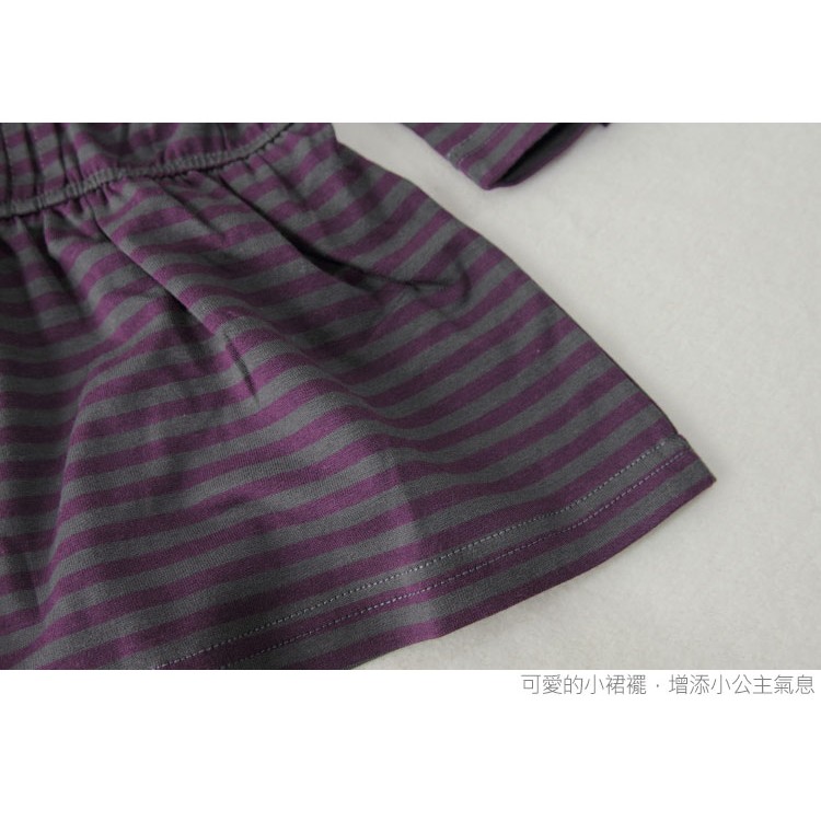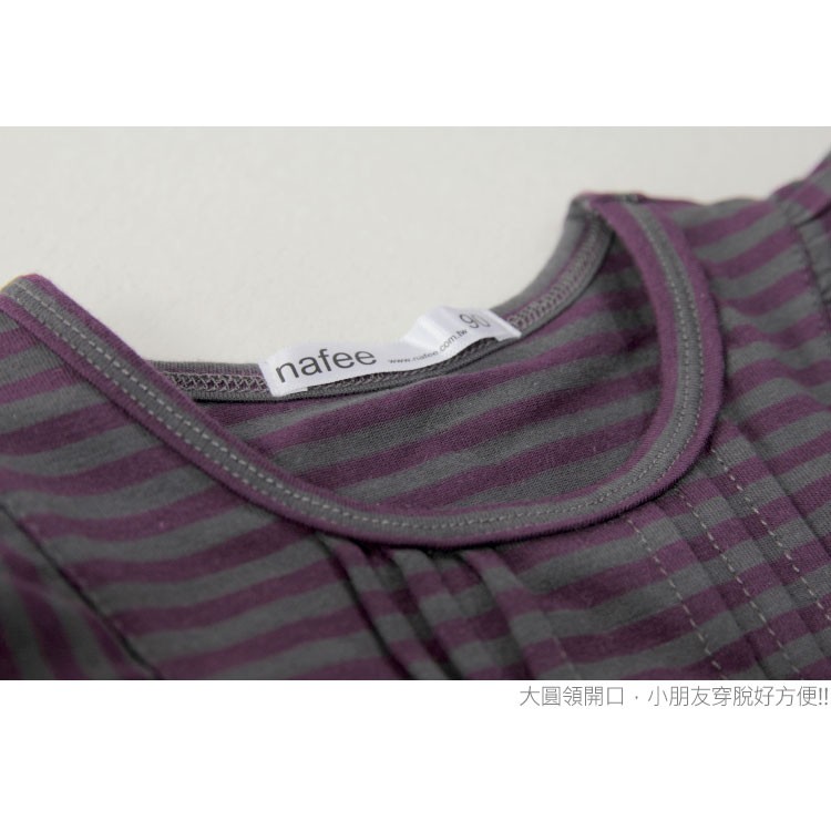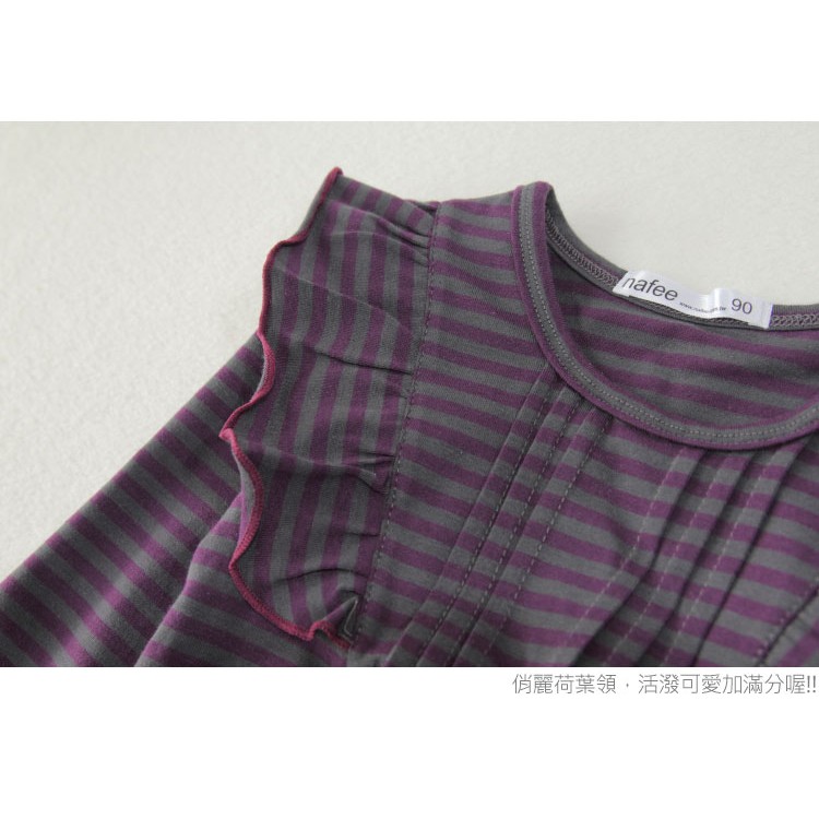 荷葉鬆緊帶紫灰條紋純棉洋裝限量款 台灣製造 nafee精品童裝 春裝 秋裝