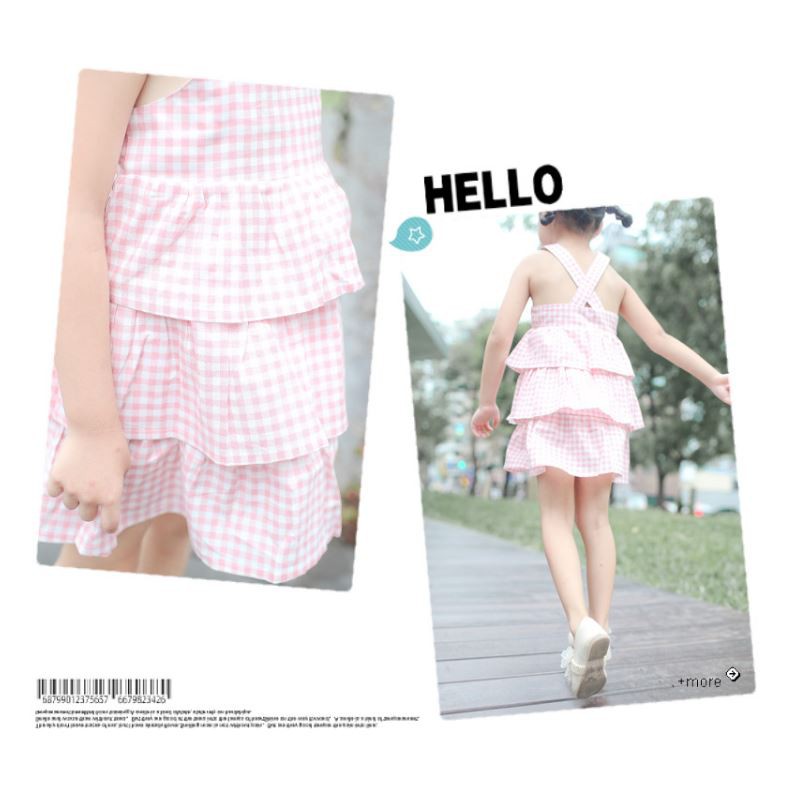 時尚質感桃粉橘格紋蛋糕裙吊帶無袖洋裝 台灣製造 nafee精品童裝 夏裝