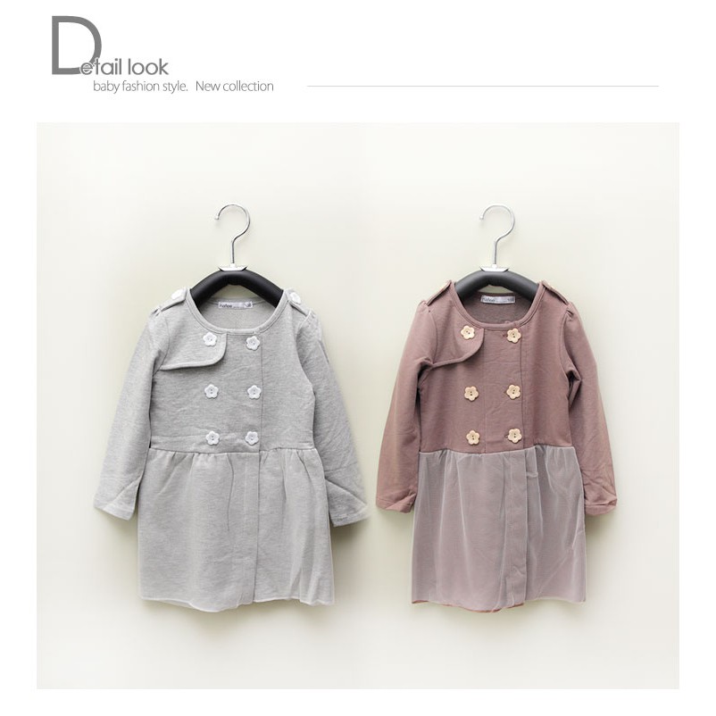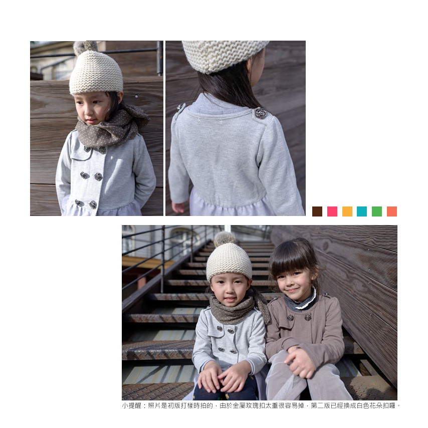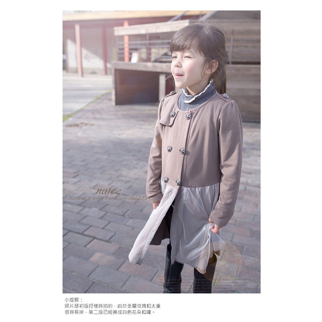 花朵扣外套式公主洋裝(淡灰、摩卡棕) 外套 洋裝 單件式 台灣製造 nafee精品童裝 春裝 秋裝