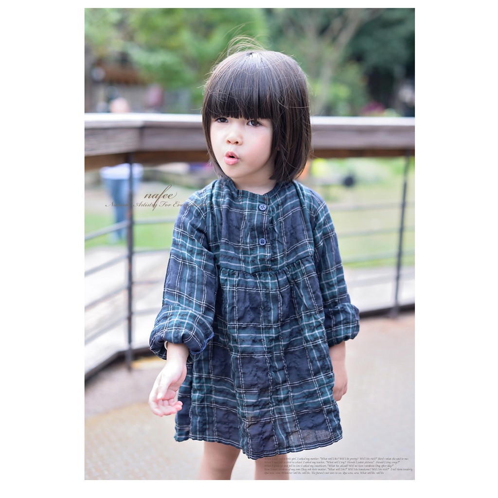 薄皺純棉深綠格紋設計娃娃裝 台灣製造 nafee精品童裝 春裝 秋裝