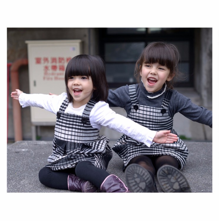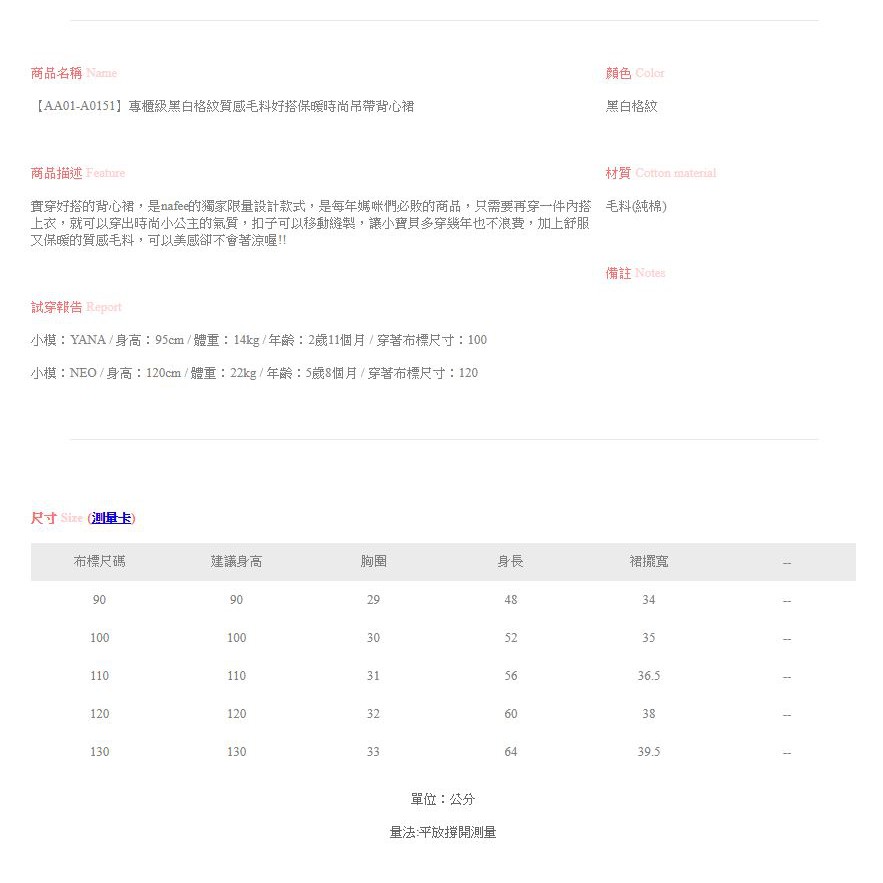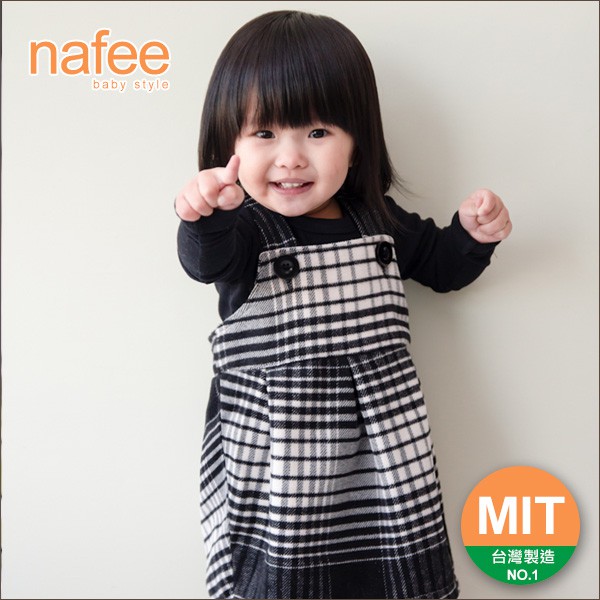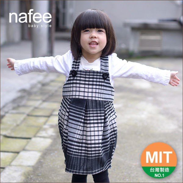 黑白格紋質感毛料時尚吊帶背心裙 台灣製造 nafee精品童裝 冬裝