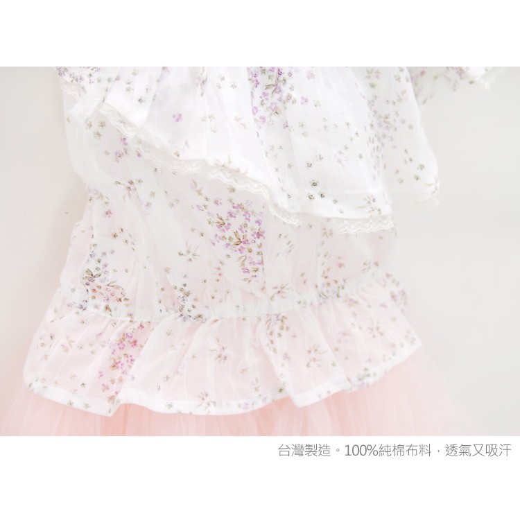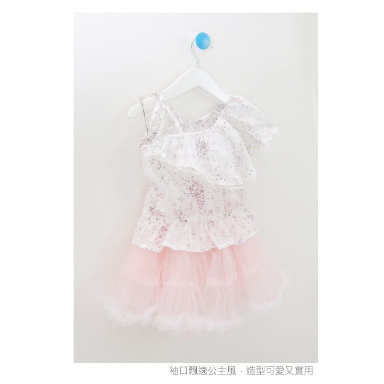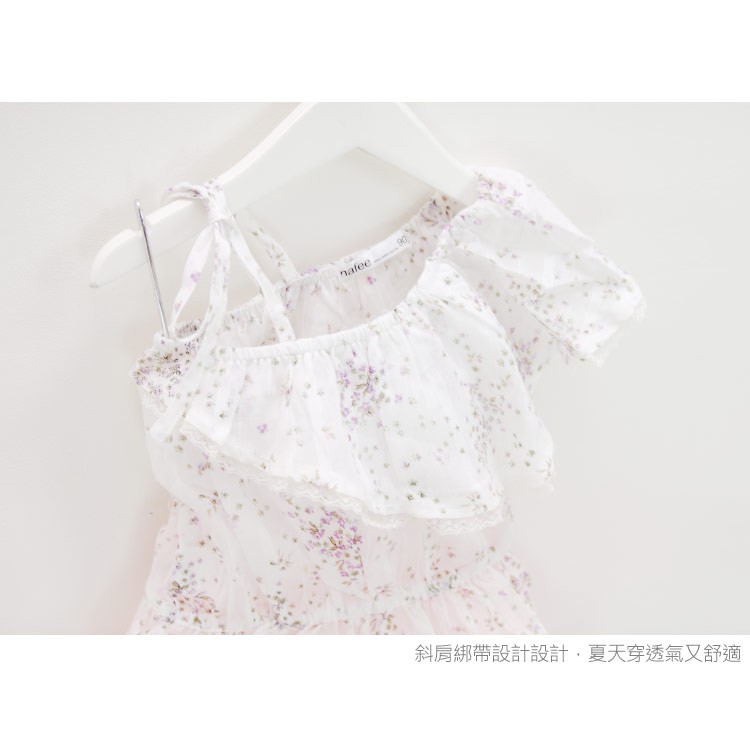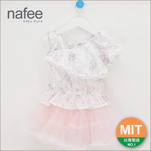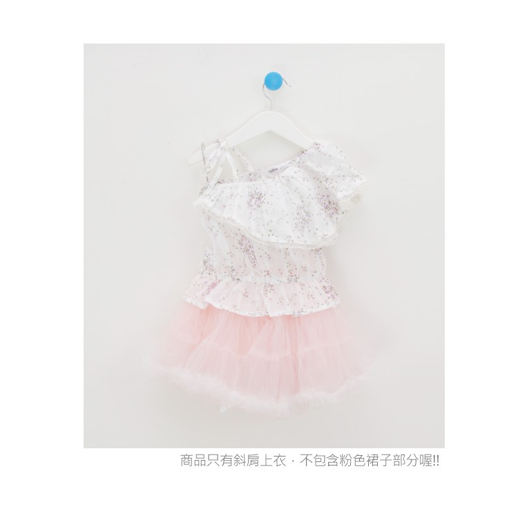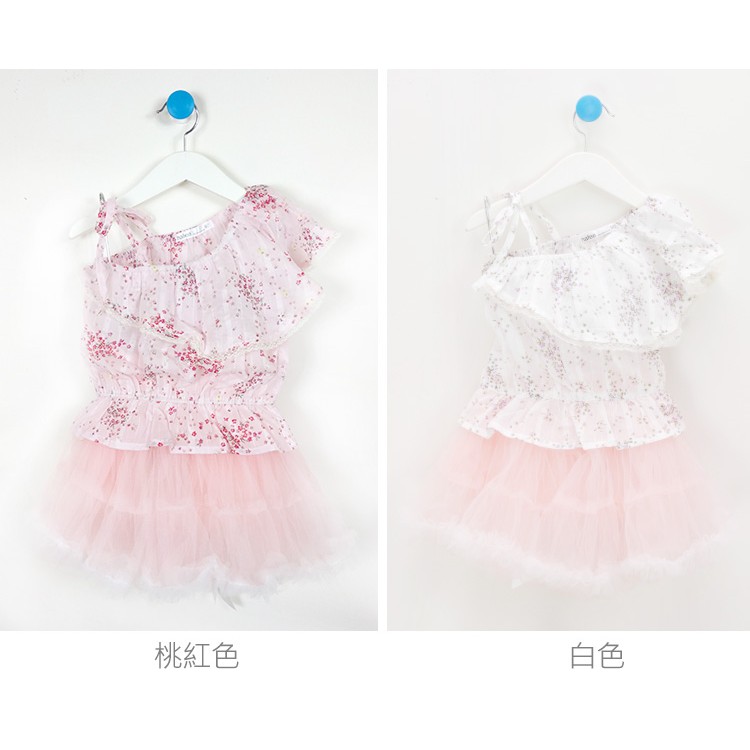 童裝 台灣製 設計款 上衣純棉(白色/桃紅色)小花斜肩大荷葉領綁帶造型設計鬆緊下襬上衣 台灣製造 nafee精品童裝