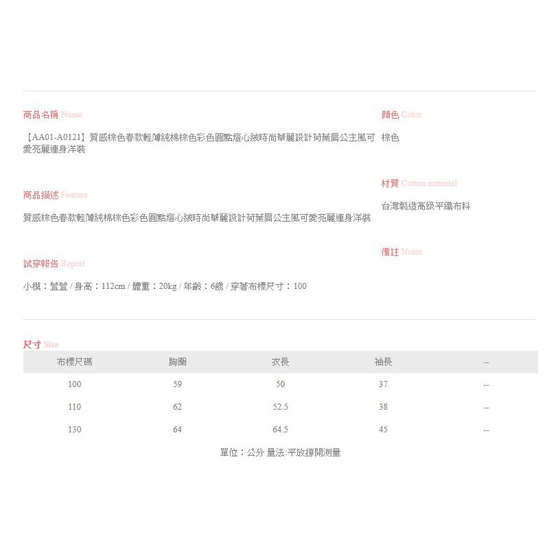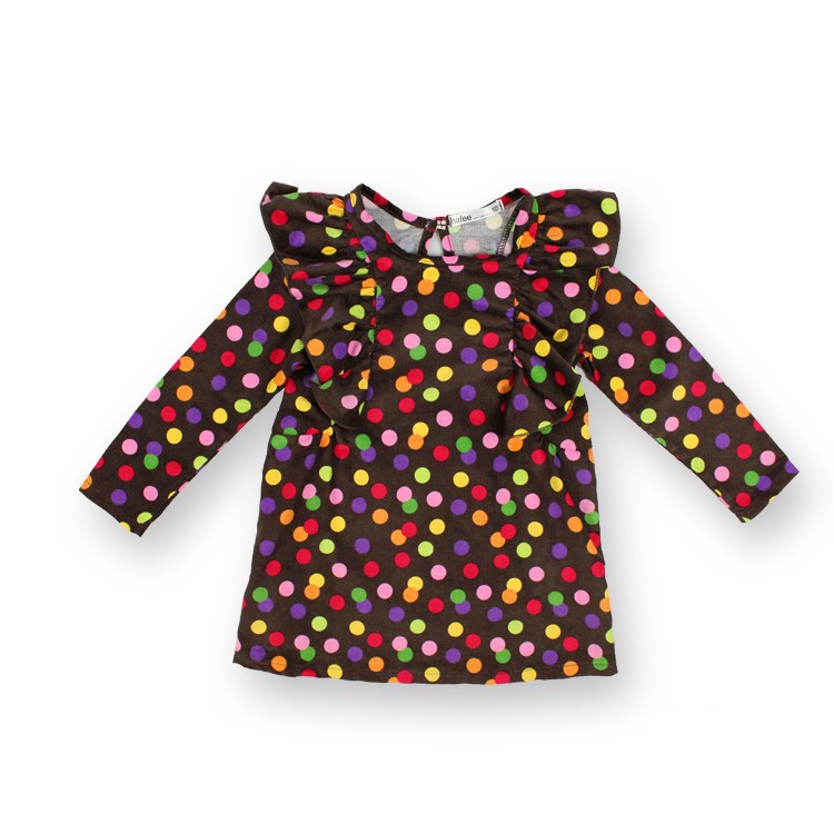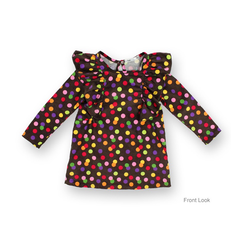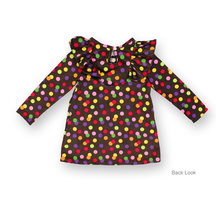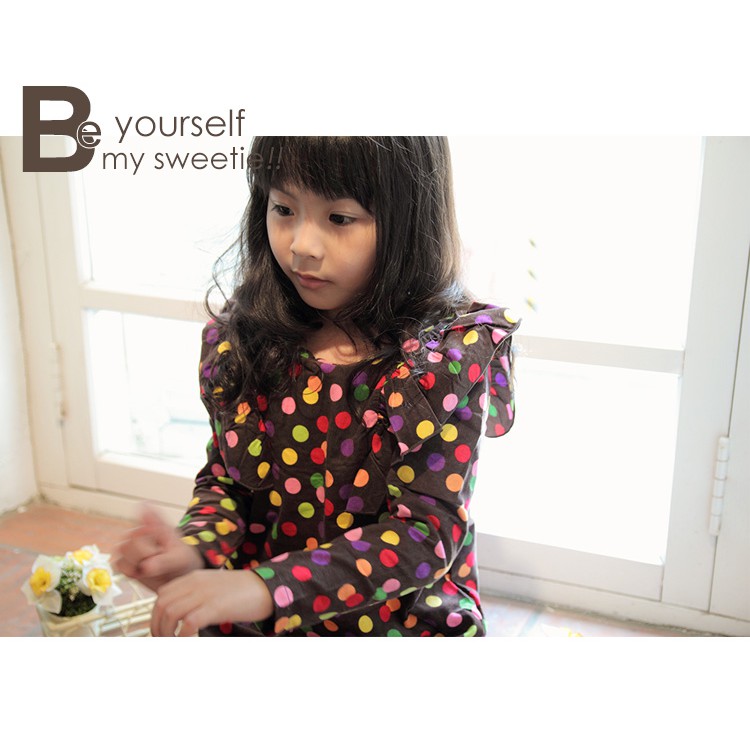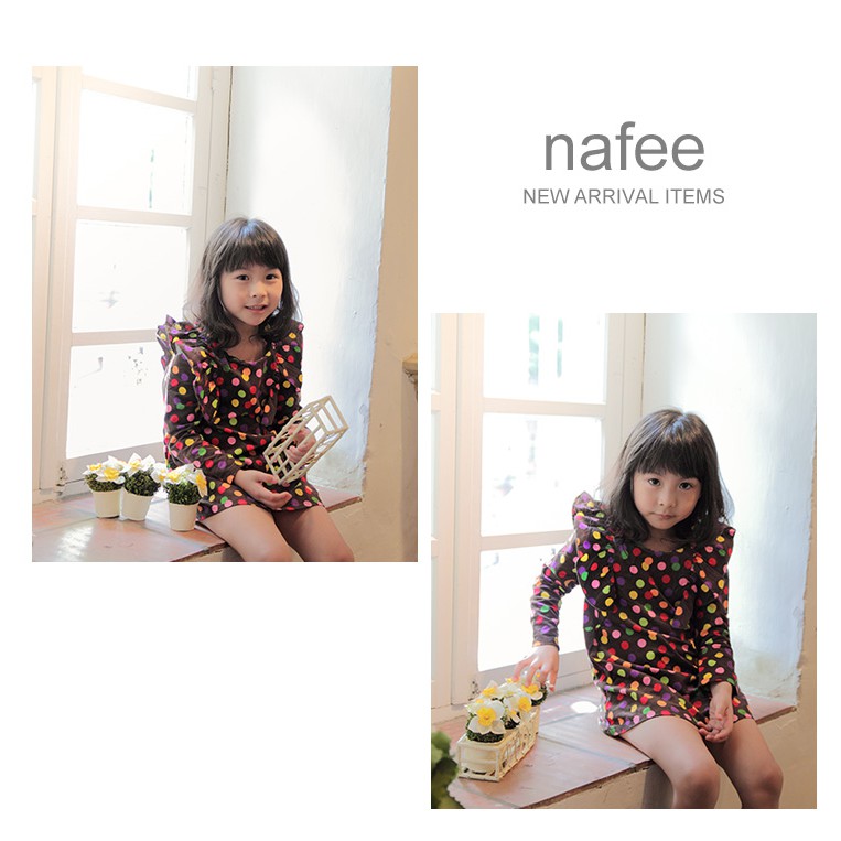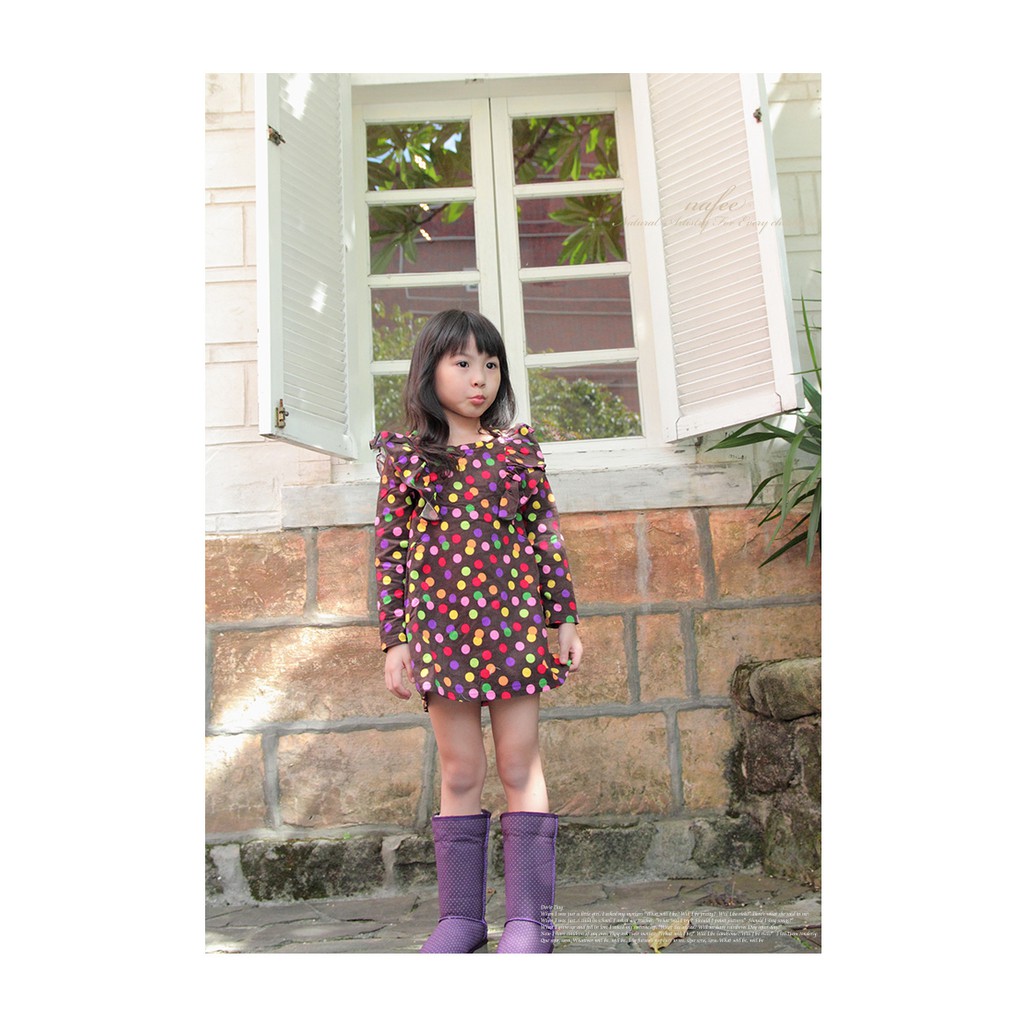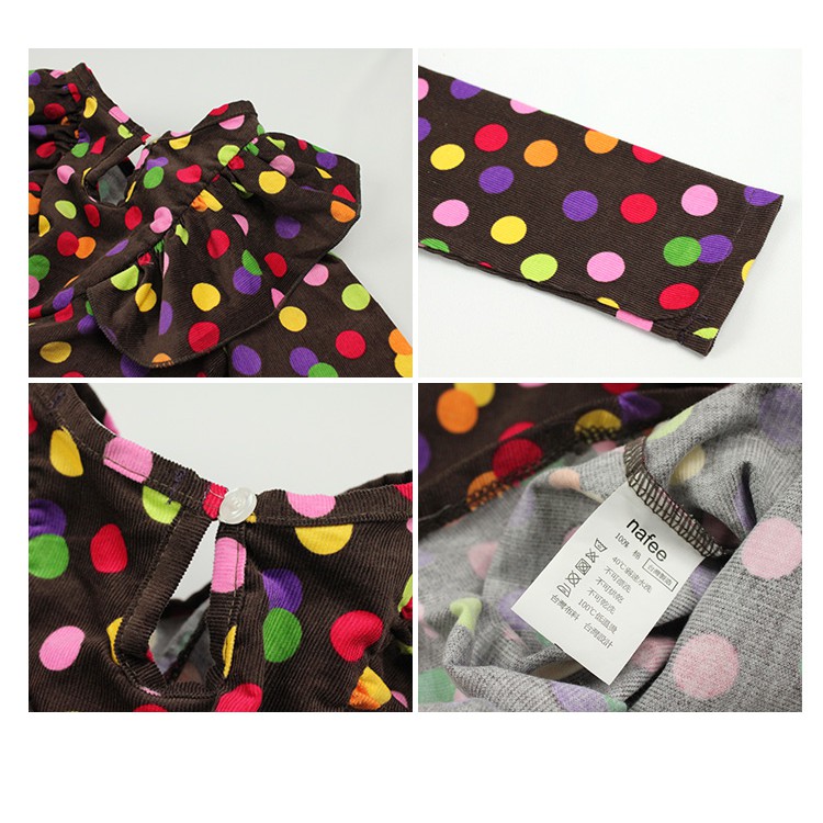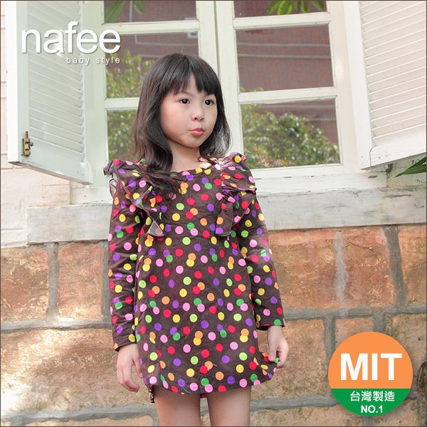 輕薄純棉棕色彩色圓點燈心絨荷葉肩公主風連身洋裝 台灣製造 nafee精品童裝 春裝 秋裝