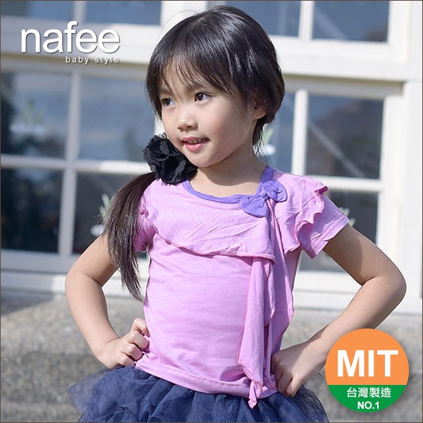 童裝 台灣製 設計款 上衣 荷葉領帶蝴蝶結垂墜設計純棉舒適上衣 台灣製造 nafee精品童裝 夏裝