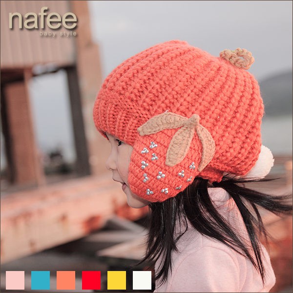 草莓護耳球球毛線帽絨線帽可愛大球帽子(成人小孩都可戴)親子帽