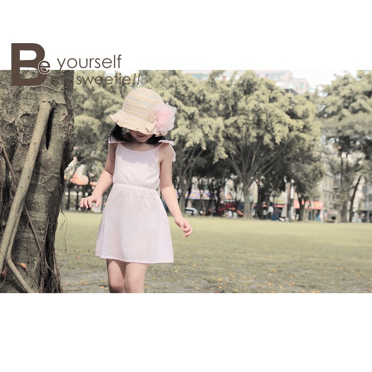 淡粉色輕薄純棉時尚設計蝴蝶結肩帶俏麗背心洋裝 台灣製造 nafee精品童裝 夏裝