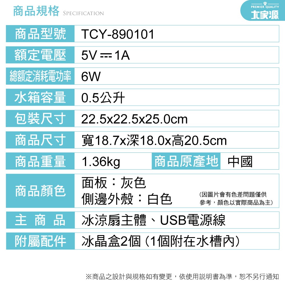 大家源 0.5L桌上型USB冰涼水冷扇TCY-890101 現貨 公司貨 尾牙