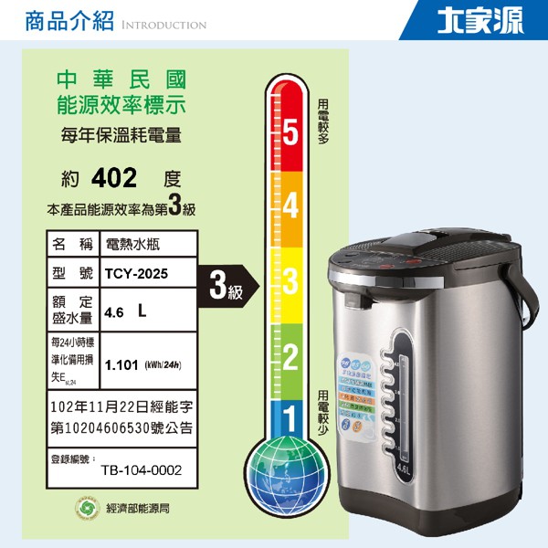 福利品 304不鏽鋼3段定溫電動熱水瓶4.6L 大家源 TCY-2025-1 現貨 公司貨