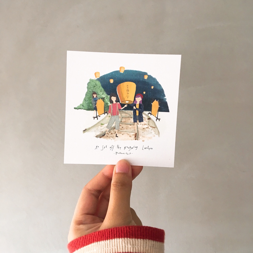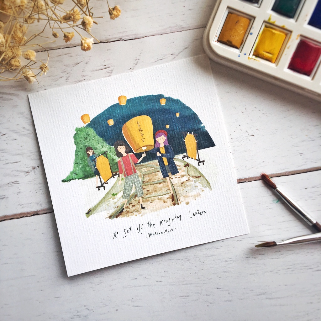 【Littdlework旗艦館】插畫水彩紙明信片 | 台灣故事 - 放天燈