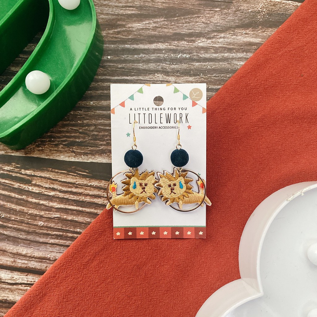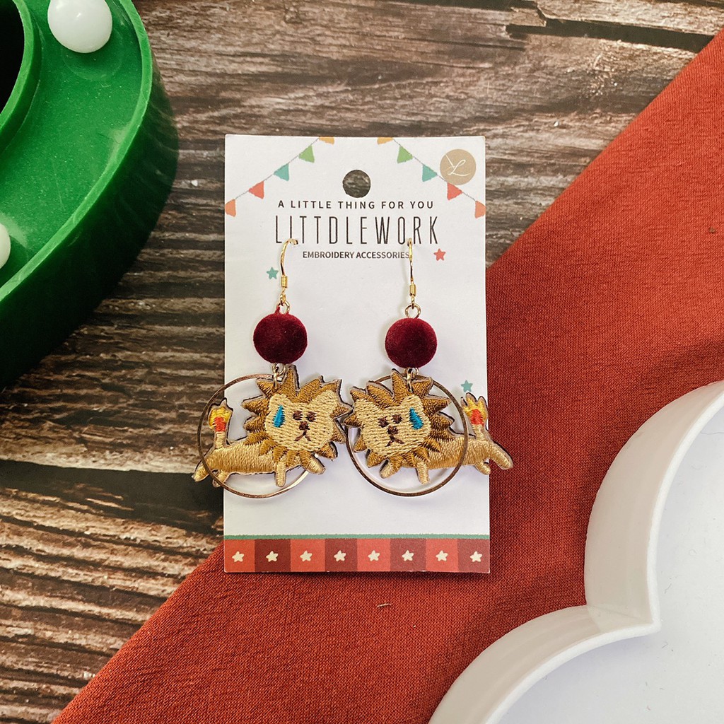 【Littdlework旗艦館】刺繡耳環 - 獅子跳火圈