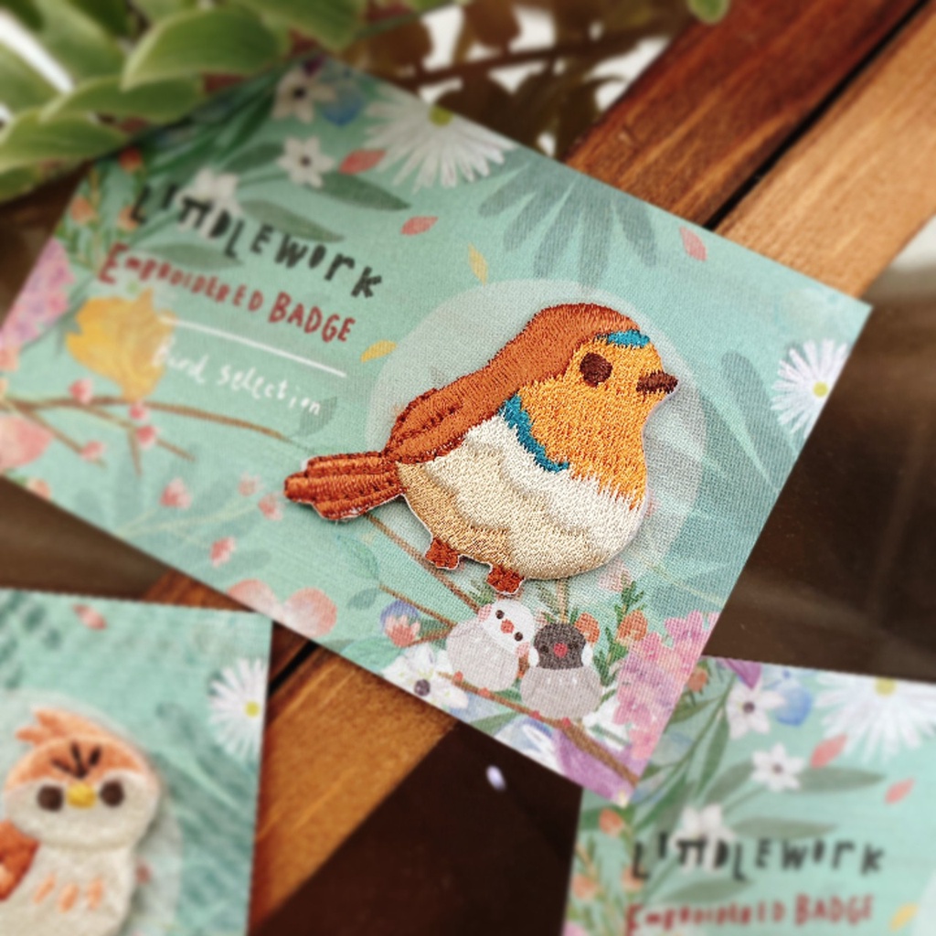 刺繡燙貼/別針 | 小鳥系列-知更鳥 | Littdlework旗艦館