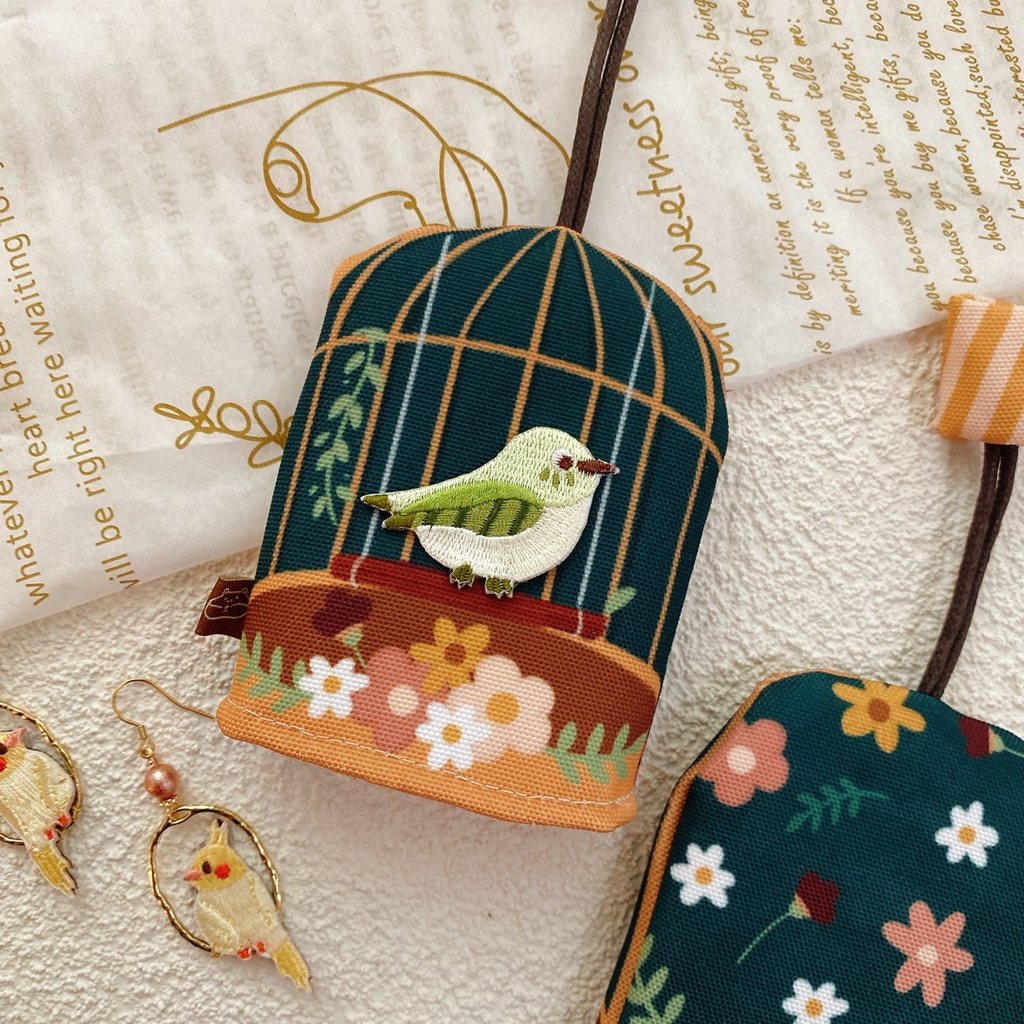鑰匙包 | 小鳥 | 附刺繡別針一枚 | Littdlework旗艦館