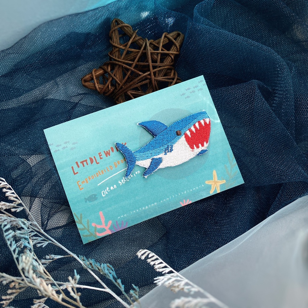 刺繡燙貼/別針 | 海洋 - 大白鯊 | Littdlework旗艦館