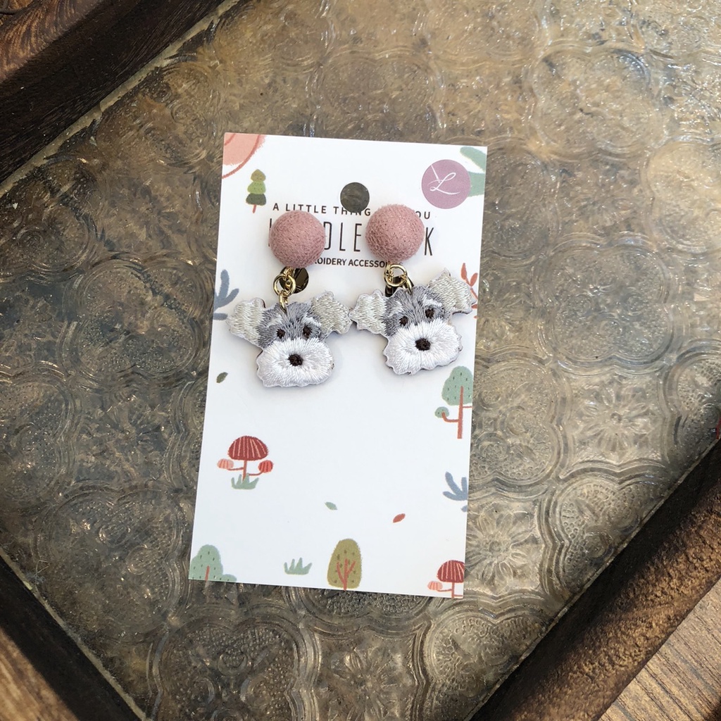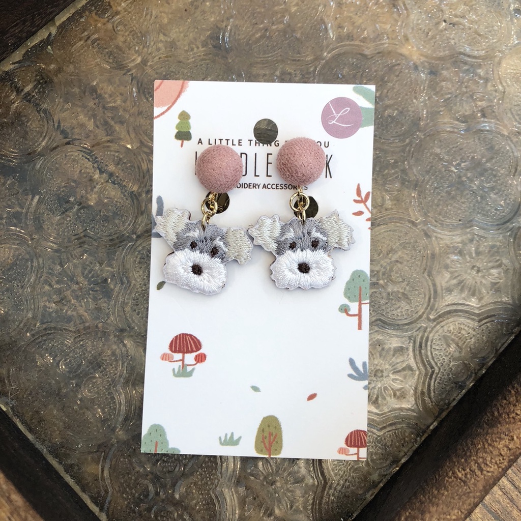 刺繡耳環 | 耳夾 / 耳釘 - 雪納瑞 | Littdlework旗艦館