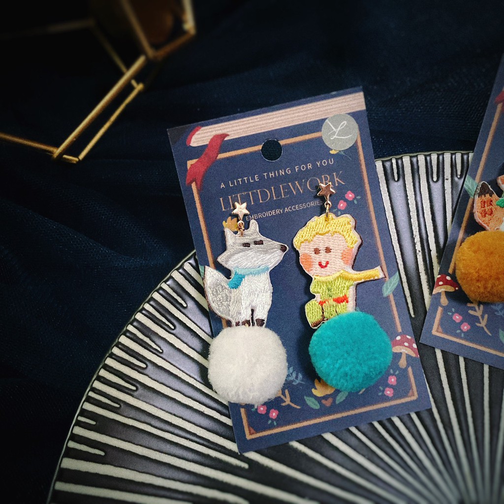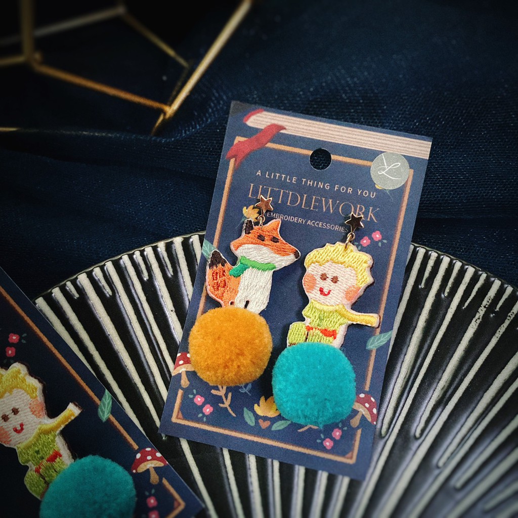 【Littdlework旗艦館】刺繡耳環 - 狐狸星球