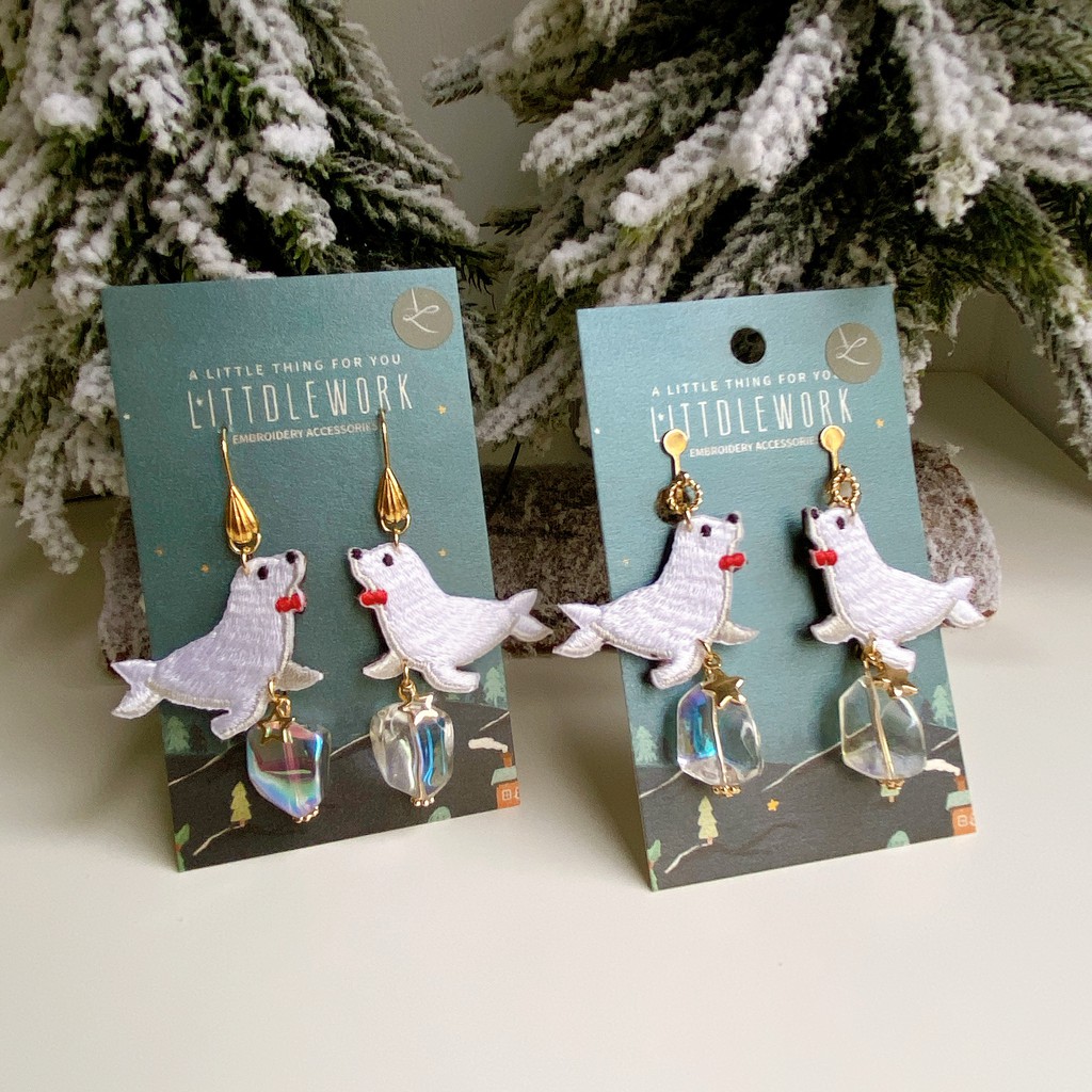 【Littdlework旗艦館】刺繡耳環 - 浮冰海狗