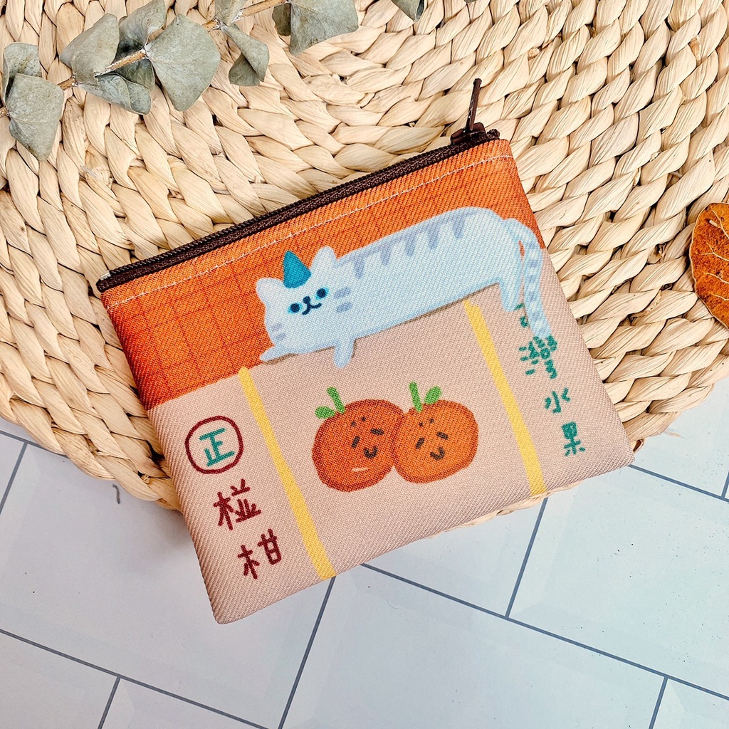 【Littdlework旗艦館】插畫零錢包 | 水果箱貓咪